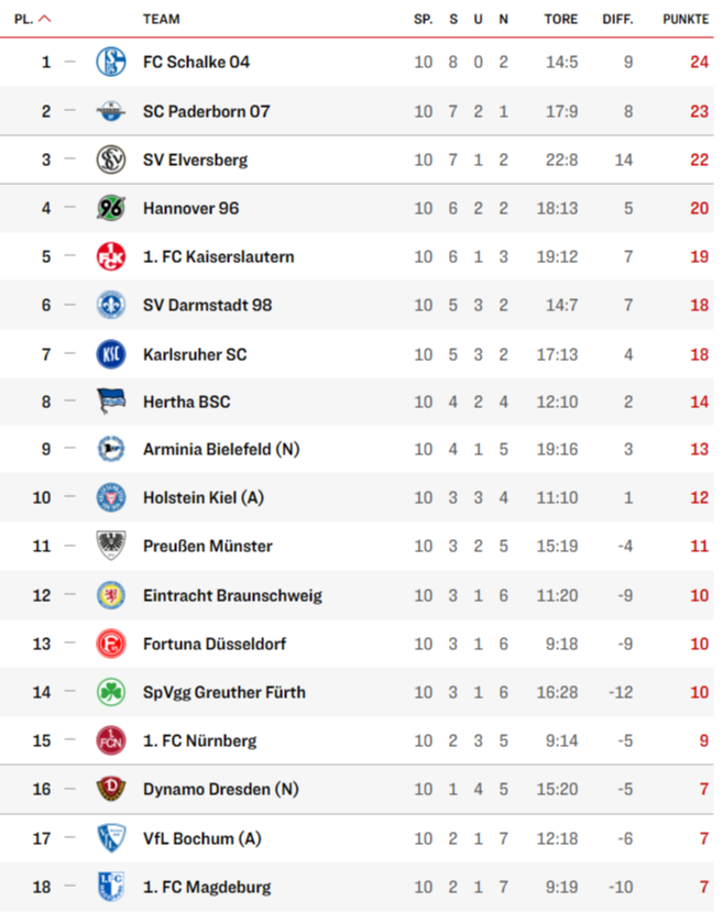 Таблица второй Бундеслиги. Ждем возвращения «Шальке» в элиту?
