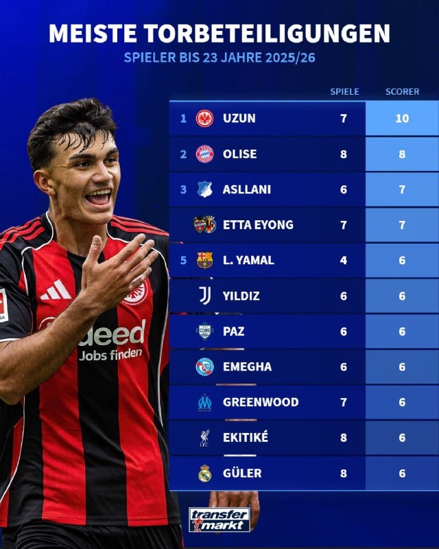 С каждым туром растет ощущение, что этот сезон для молодого нападающего – последний в команде Ильцера. Если верить сообщениям в прессе, за игроком уже сейчас следят «Бавария» и «Барселона». Гол «Фрайбургу» для Аслани стал седьмым в шести матчах – такой результат позволил ему занять третье место в списке лучших бомбардиров до 23-х лет в топ-5 Европы в сезоне-2025/26. Обошел Ламина Ямаля!
