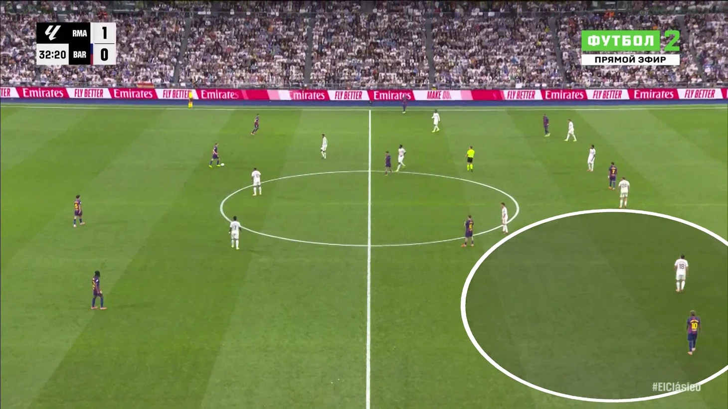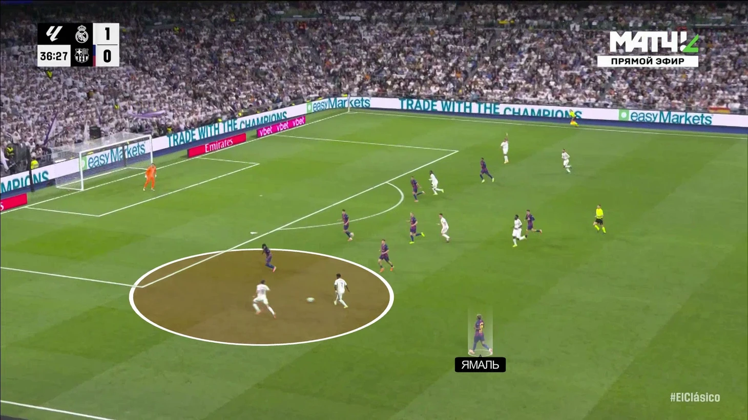 «Реал» умышленно оставлял Ламина в одиночестве: закрыл левый фланг, против самого опасного вингера соперника оставил одного Каррераса. В теории это максимально комфортные условия для звезды «Барсы». В реальности Ямалю отдавали мяч и почти не поддерживали: Жюль Кунде слишком опасался рывка Винисиуса. Ламину пытались помогать Фермин и Педри – их оперативно накрывали. Ямаль постоянно оставался один.