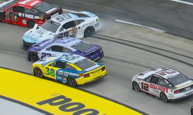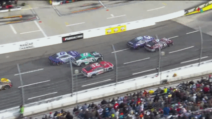 На пит-стопах под желтыми флагами происходит интересный момент – Эллиот теряет время из-за того, что механик побежал за укатившим колесом. Вспоминаем, что именно из-за этого Эллиот упал на дно в Лас-Вегасе. Хорошо, что механики предотвращают такие ситуации, но может лучше поработать над тем, чтобы колеса не укатывались?