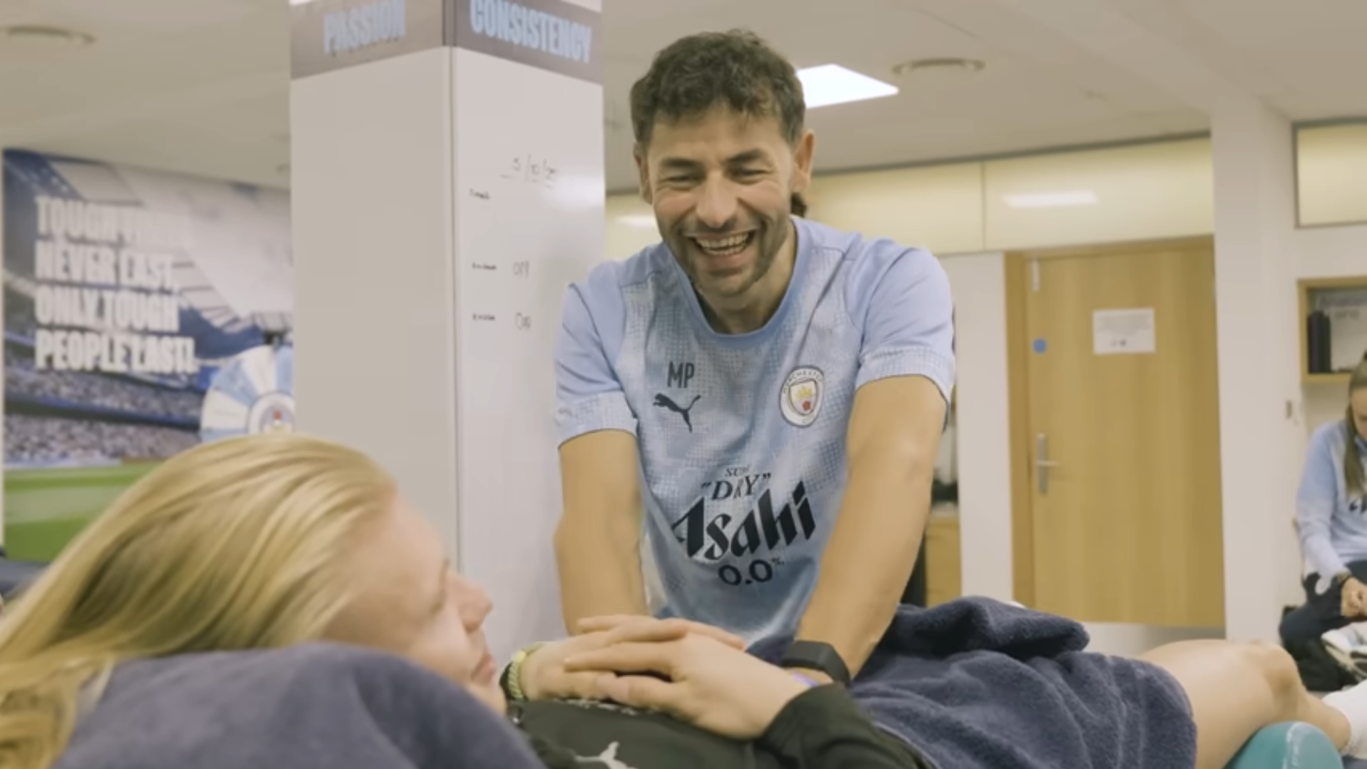 Снова работа с физиотерапевтом. Здесь больше привычная большинству футболистов растирка и активация перед тренировкой. Ключевое отличие, пожалуй, в числе специалистов и более индивидуальном подходе