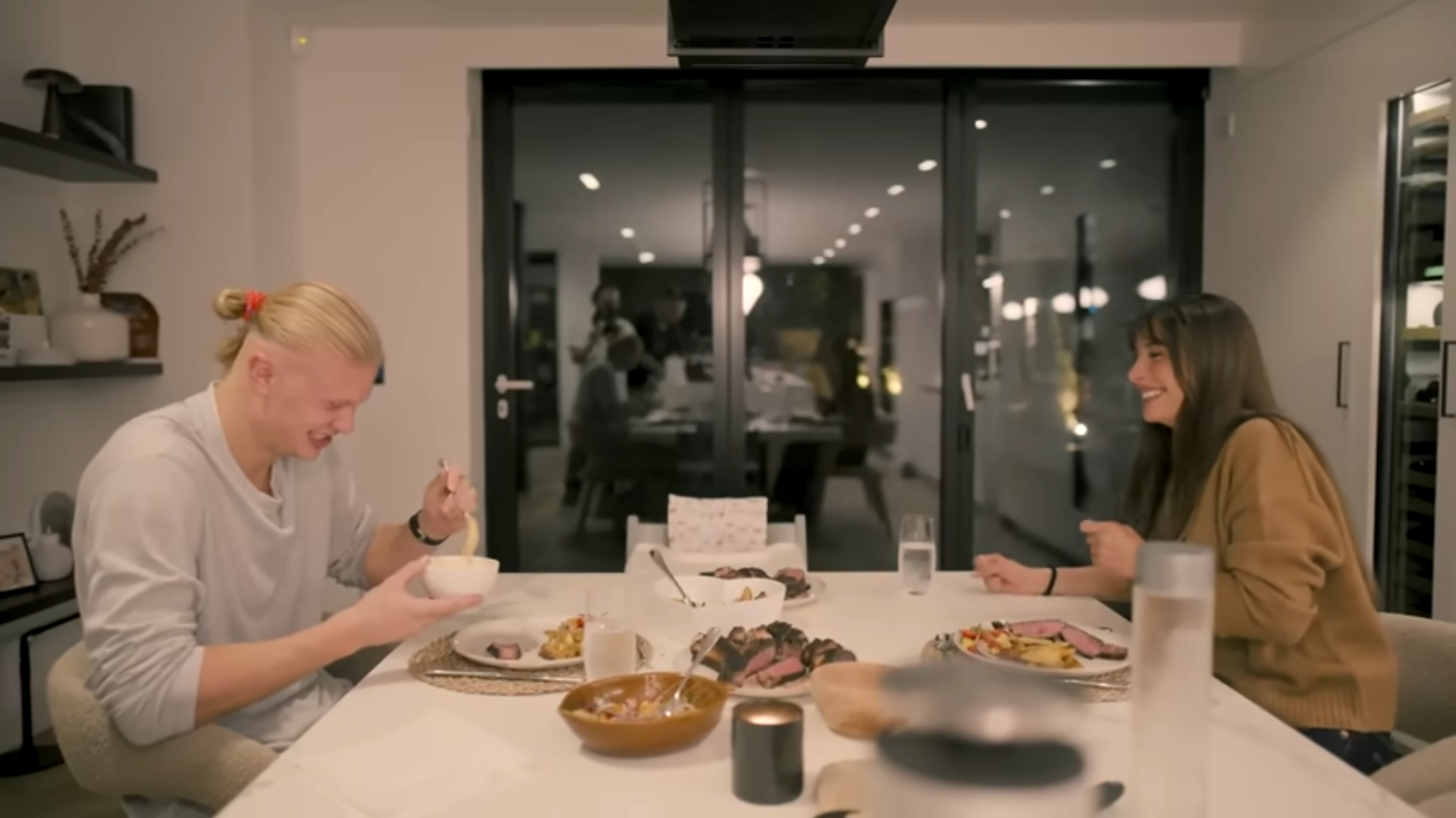 Утром и вечером мы видим самую важную часть любой нефутбольной жизни Эрлинга — Изабель Хаугсенг Йохансен— его спутницу. Изабель сама занималась футболом. Эрлинг даже сравнил ее с Гиггзом и назвал выдающимся левым вингером. Они познакомились еще в академии в Норвегии. И это, на самом деле, очень важный момент — Изабель сама прошла футбольную академию и хорошо понимает, что такое жизнь, связанная с профессиональным спортом и футболом в частности. Сама говорит, что даже изучала статьи по нутрициологии и восстановлению, чтобы помогать Эрлингу дома с питанием.