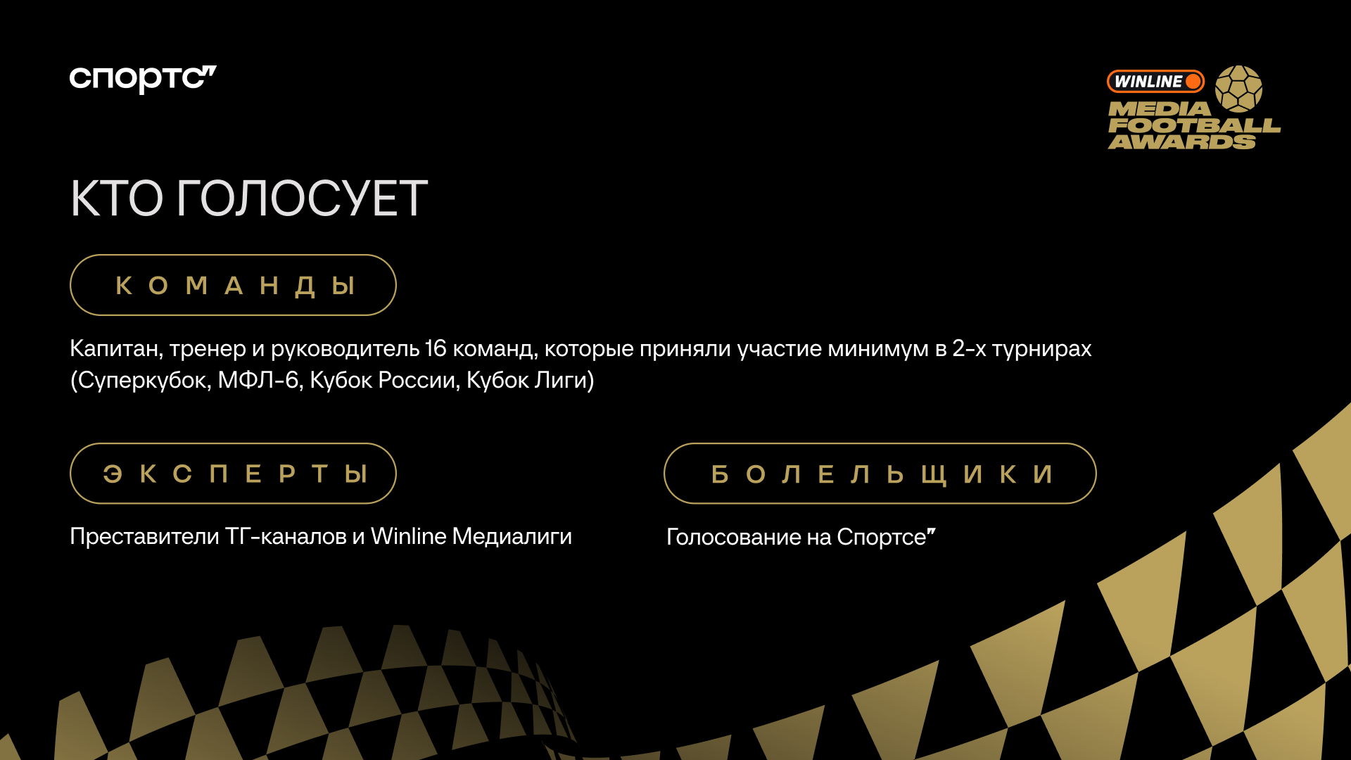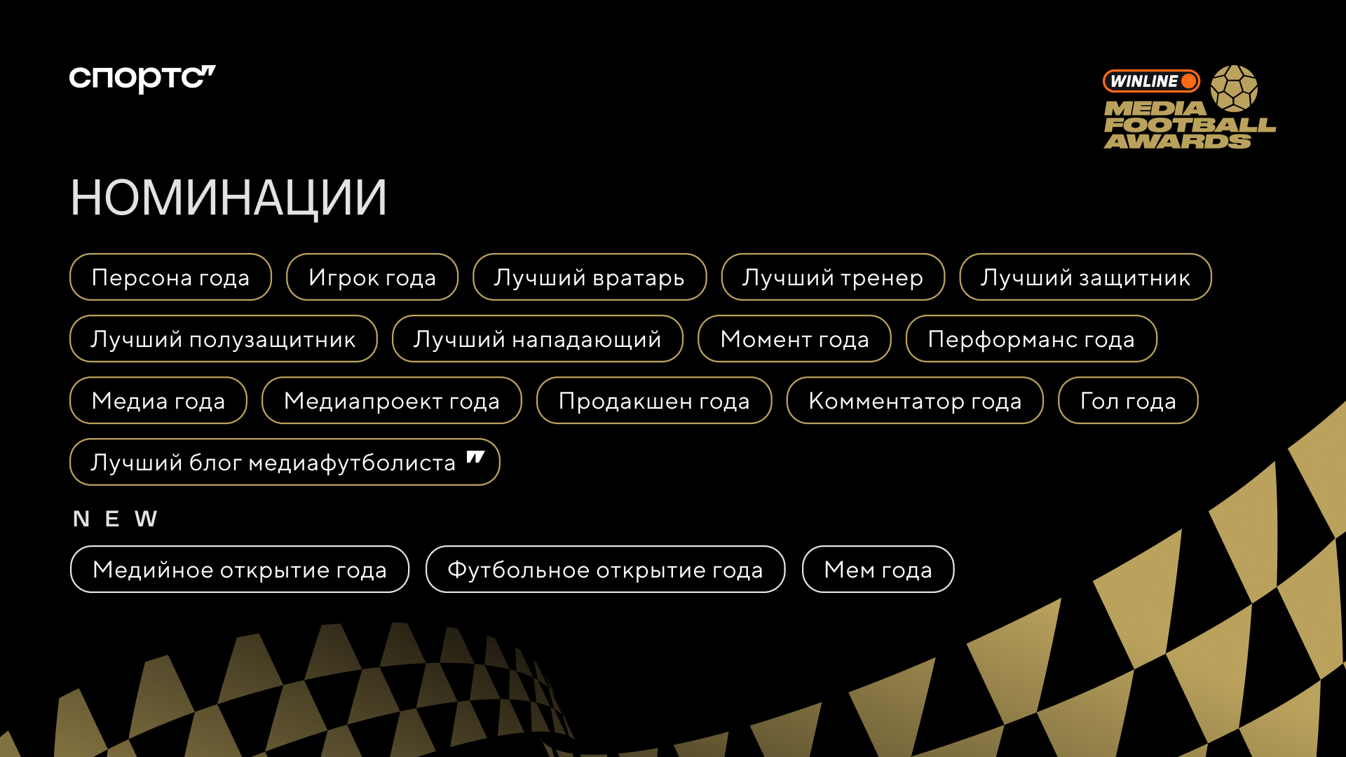Медиалига и Спортс’’ запускают голосование в 18 номинациях. В 17 голосуют эксперты, команды и болельщики. Еще в одной победителя определит Спортс’‘.