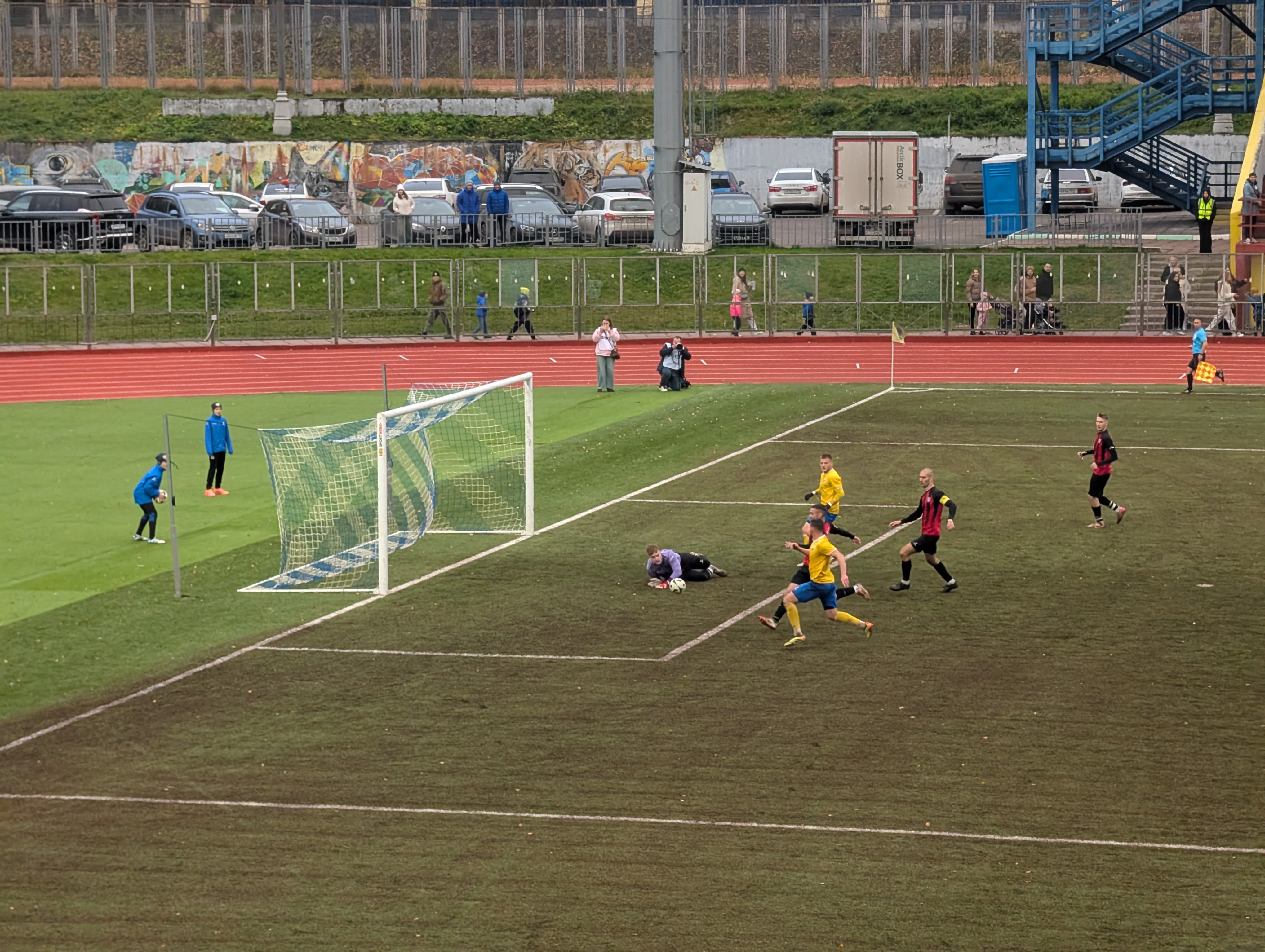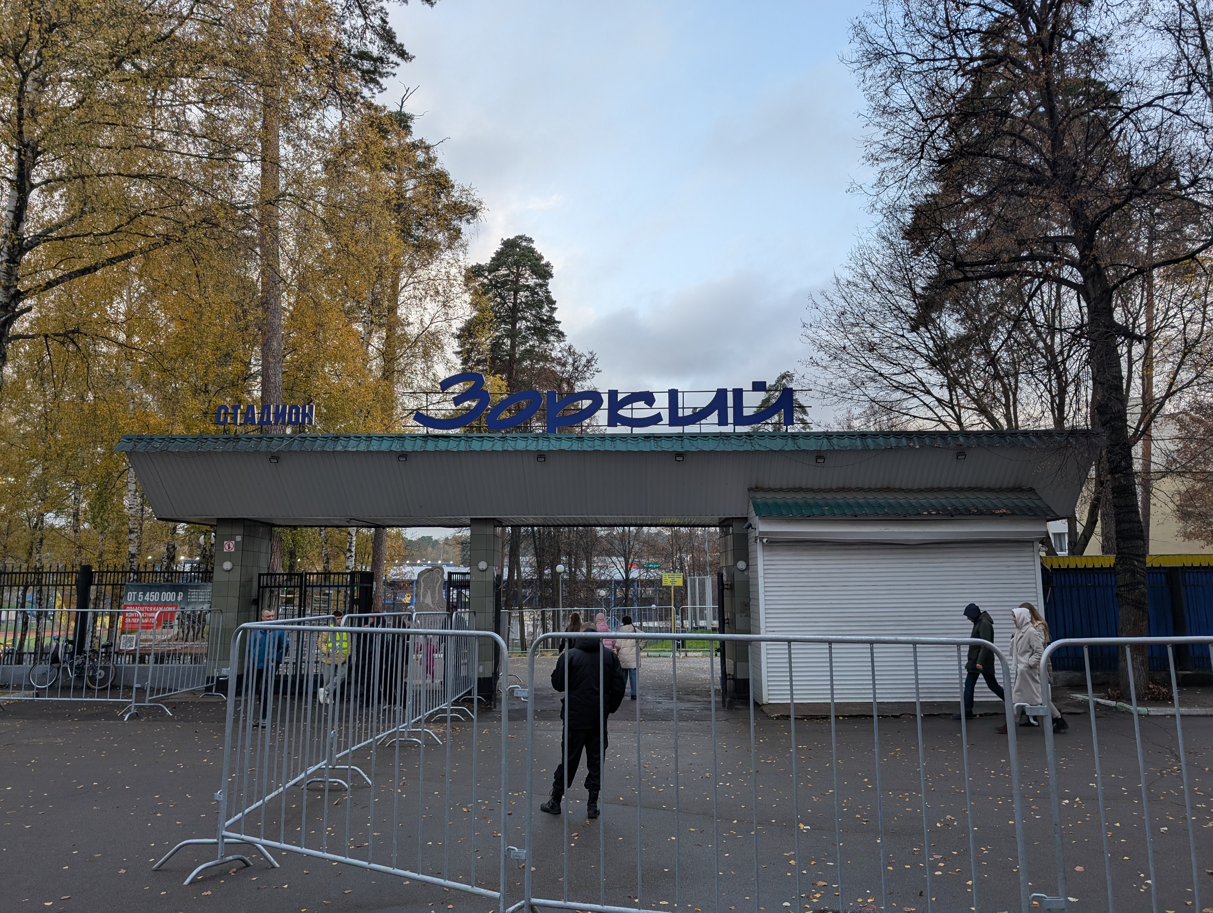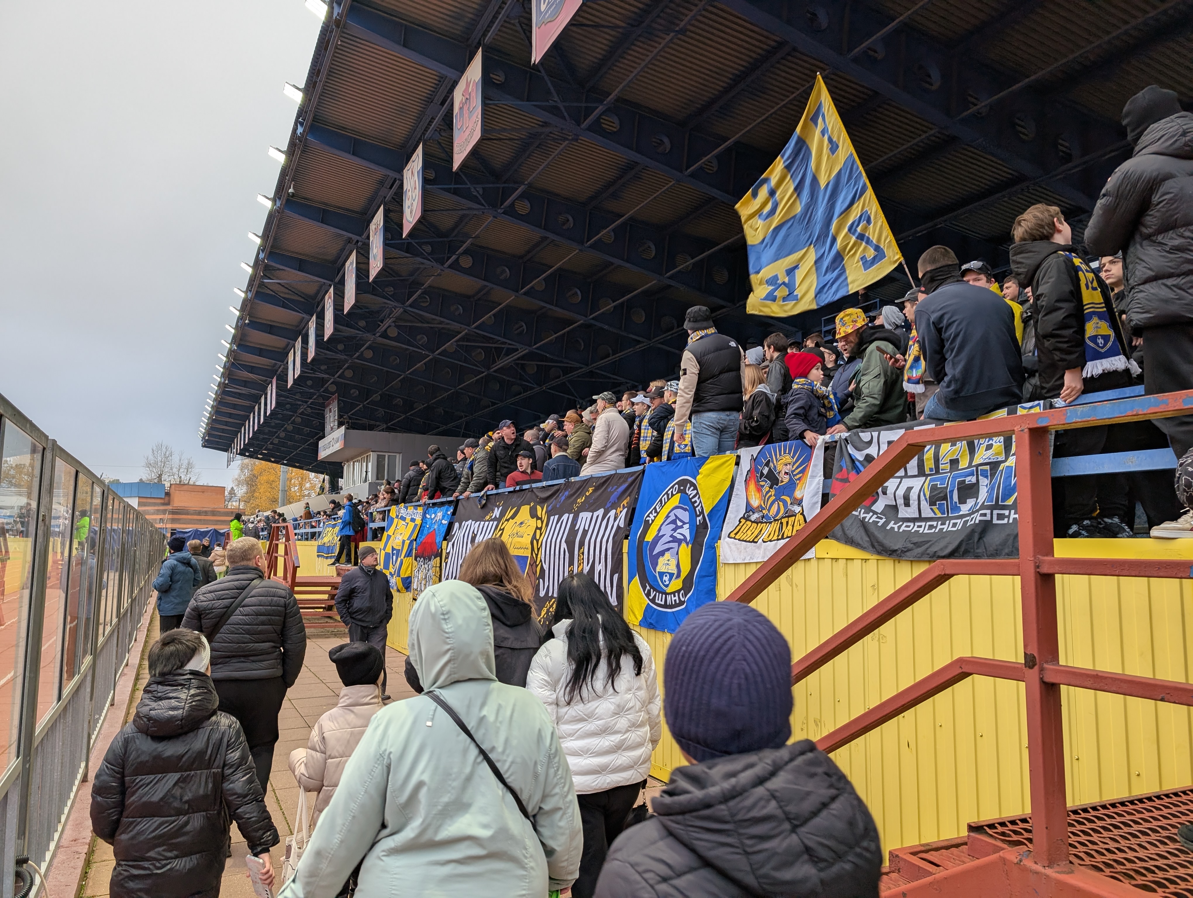 Субботний, пасмурный, прохладный осенний день. Посмотрел один тайм игры в Лобне, замёрз нехило. Далее оставаться там в планах не было, ведь впереди суперматч: ФК «Зоркий» (Красногорск) против ФК «Металлист» (Королёв). Зоркий по итогам двадцати пяти туров идёт на первом месте и опережает ближайшего преследователя (ФК «Красное Знамя» Ногинск) на одно очко. Данного преимущества жёлто-синие добились в прошлом очном матче с Ногинском (0:1). На той игре я был, атмосфера - кайф. Топовая поддержка гостей, и эмоциональное празднование гола с фанатами🔥 Об этой игре ещё напишу отчёт, но позже. А пока, приложу ссылку с постом на ТГ канале об этой игре.