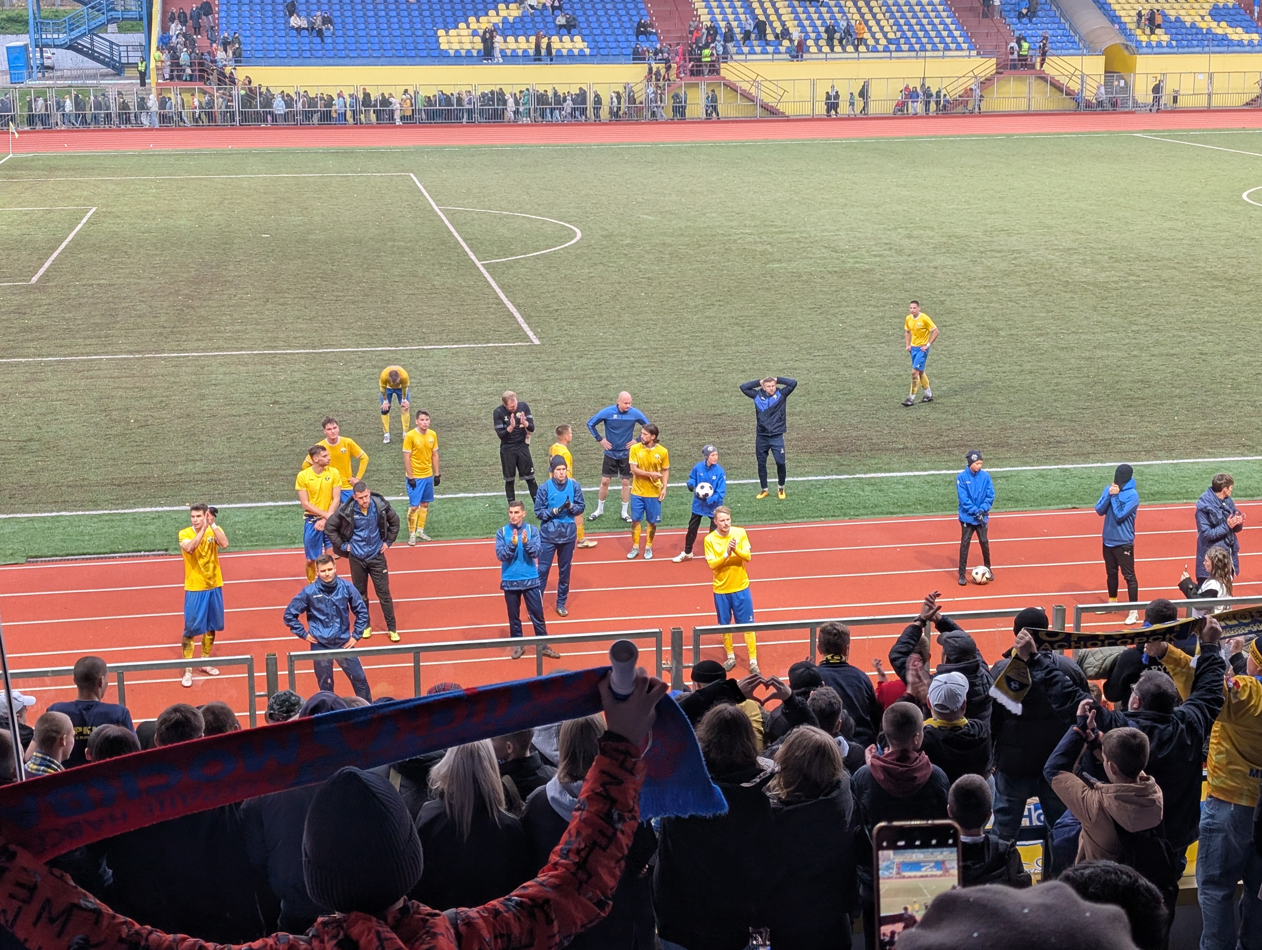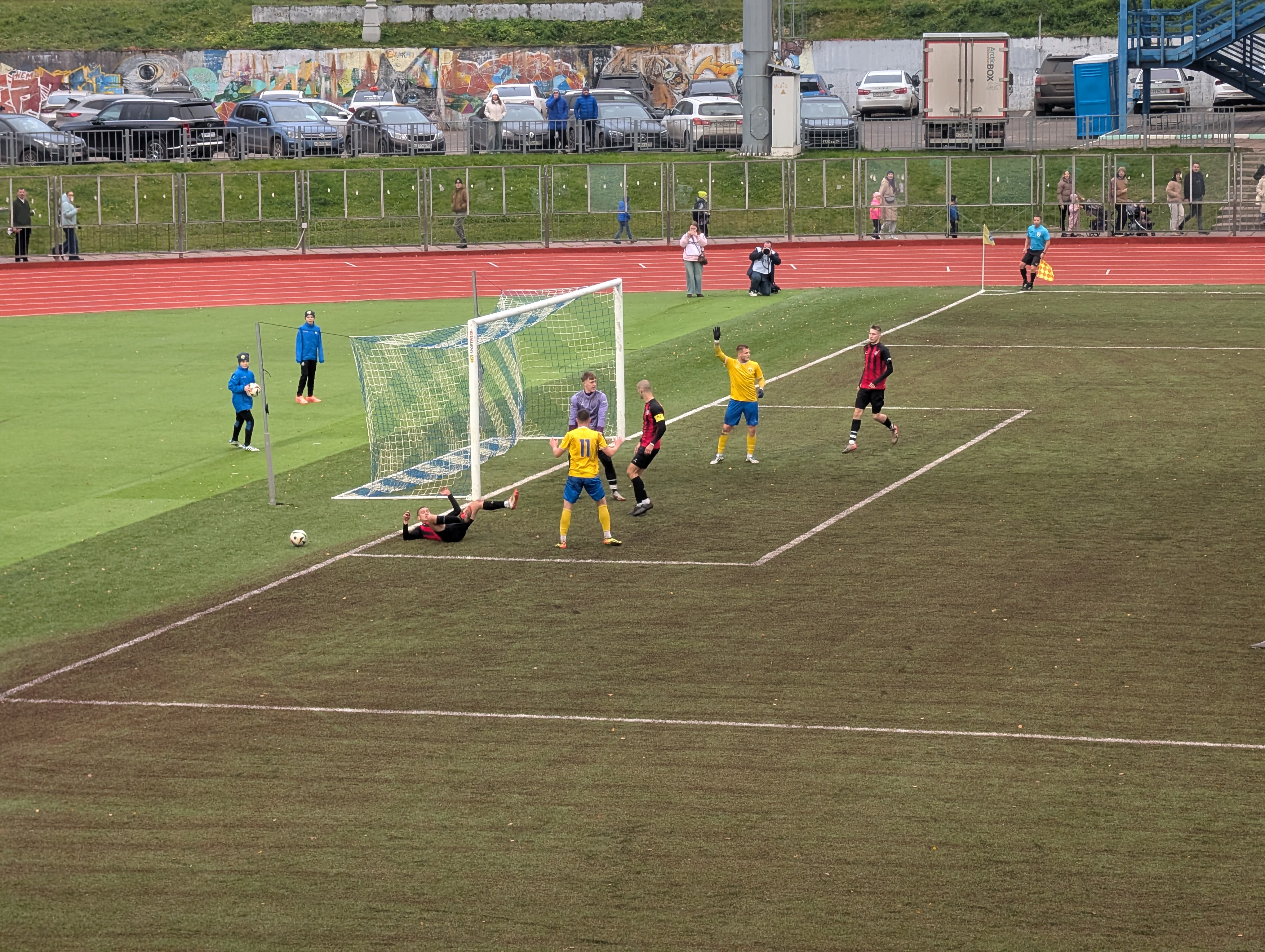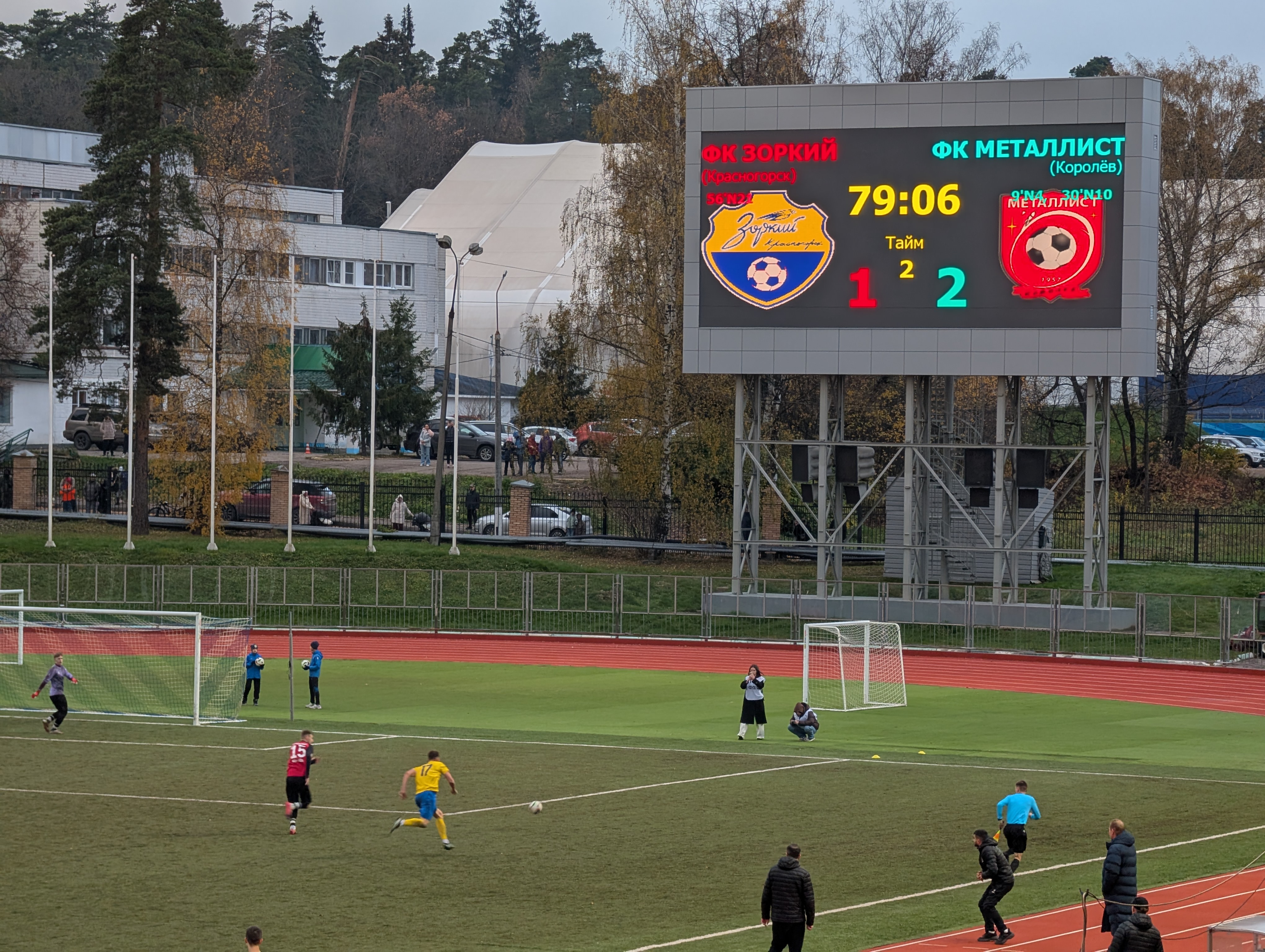 Субботний, пасмурный, прохладный осенний день. Посмотрел один тайм игры в Лобне, замёрз нехило. Далее оставаться там в планах не было, ведь впереди суперматч: ФК «Зоркий» (Красногорск) против ФК «Металлист» (Королёв). Зоркий по итогам двадцати пяти туров идёт на первом месте и опережает ближайшего преследователя (ФК «Красное Знамя» Ногинск) на одно очко. Данного преимущества жёлто-синие добились в прошлом очном матче с Ногинском (0:1). На той игре я был, атмосфера - кайф. Топовая поддержка гостей, и эмоциональное празднование гола с фанатами🔥 Об этой игре ещё напишу отчёт, но позже. А пока, приложу ссылку с постом на ТГ канале об этой игре.