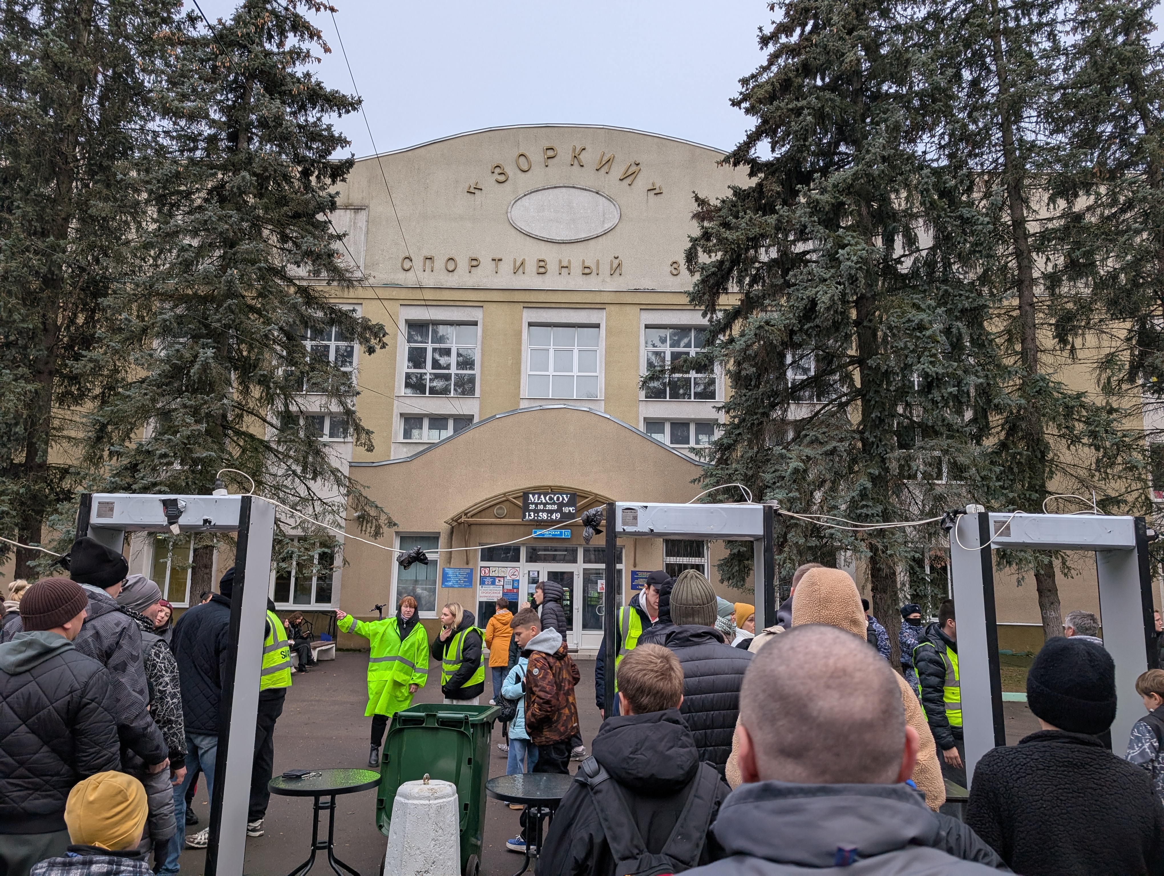 А вот и очереди на вход, досматривают серьёзнее чем в Ярославле на Шине.