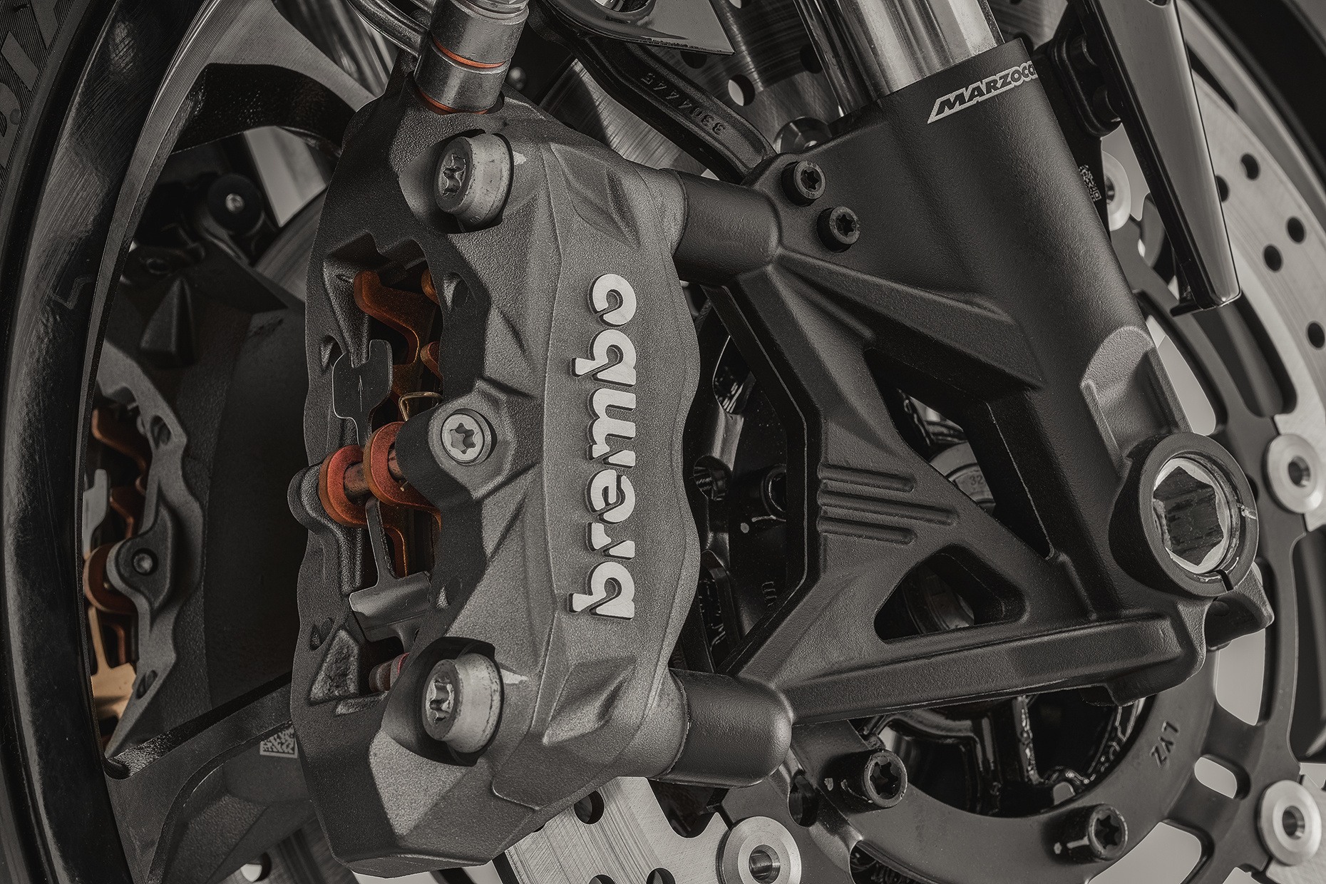 К слову, дизайнер, проведший большую часть своей профессиональной карьеры за рисованием итальянских мотоциклов, — не единственная связь с Апеннинским полуостровом. Посмотрите на конструкцию комбинированного шасси, собранного из стальной трубчатой «клетки» и алюминиевых отливок с регулируемыми подвесками по краям! Ничего не напоминает? Немного намекнём: городок Скиранна, провинция Варезе и побережье одноимённого озера... Вот то-то же!