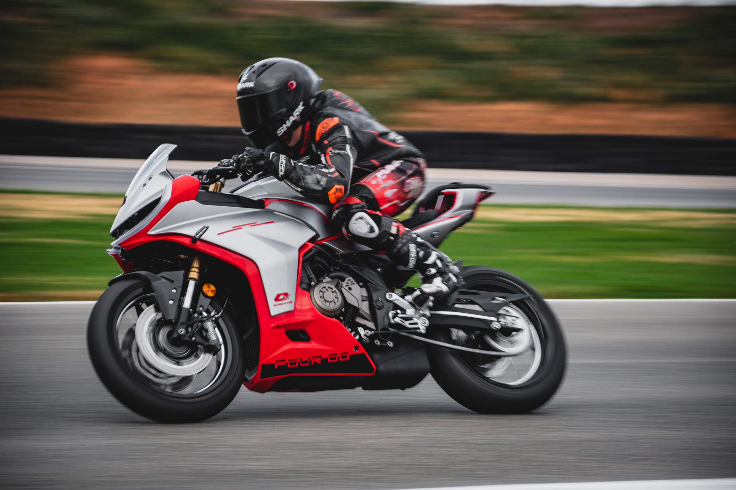 Впрочем, в этом и есть вся суть «карманных ракет»: компактный QJMOTOR не пугает и не требует сверхусилий, но награждает скоростью, если держать 421-кубовую рядную «четвёрку» в тонусе. На прямых — в полный дроссель и вжавшись подбородком в бензобак подобно гонщику Moto3. Все повороты — исключительно ходом и плавными широкими траекториями, реализуя каждую из 77,5 лошадиных сил без остатка. Точки торможения — с каждым кругом всё позже, а момент отпускания тормозов при трейл-брейкинге — всё раньше. Это — противоположность пилотированию «литра»: не борьба с мощью (порой чрезмерной), а работа с ритмом и точностью. Скучно? Отнюдь! От избытка эмоций хочется орать во всё горло — в унисон с мотоциклом! Собственно, ради этого и создан SRK 421 RR.