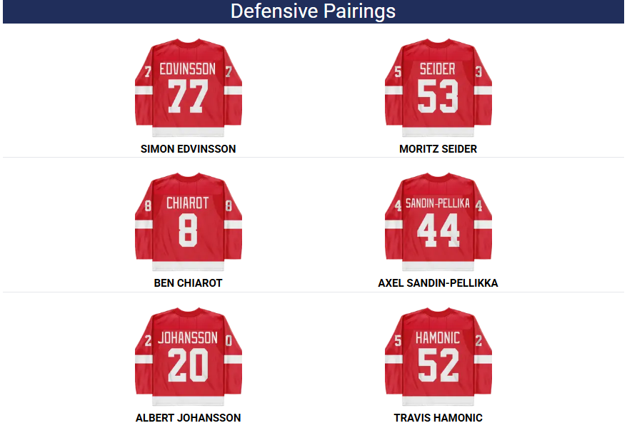 Смена связана с тем, что номинальная вторая пара (начала матч) хорошо показала себя в прошлой игре в некоторых отрезках. Я также отмечал, что Зайдеру требуется какая-то определенность с игровым стилем партнера – и еще бы откуда-то взять свежих сил, ибо наш помощник капитана выглядит немного растрепанным в последнее время.