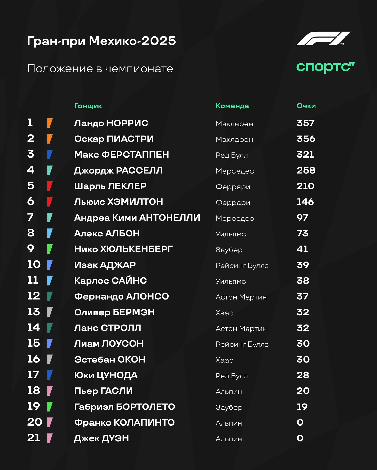 Гран-при Мехико показал эффект от крупных просчитанных обновлений в самом конце сезона при нынешней плотности «Ф-1». Только американская команда единственная отказалась от серьезного переключения на проект 2026-го до полного уточнения правил и работала над значительными улучшениями для 2025-го вплоть октября. Очередной пакет апгрейдов поступил на домашнем Гран-при США – там «Хаас» не успел полностью разобраться и реализовать потенциал новой машины из-за спринта, но обладатель улучшенных деталей Оливер Бермэн все равно сумел пробиться в топ-8 в квалификации и приехать в гонке 9-м.