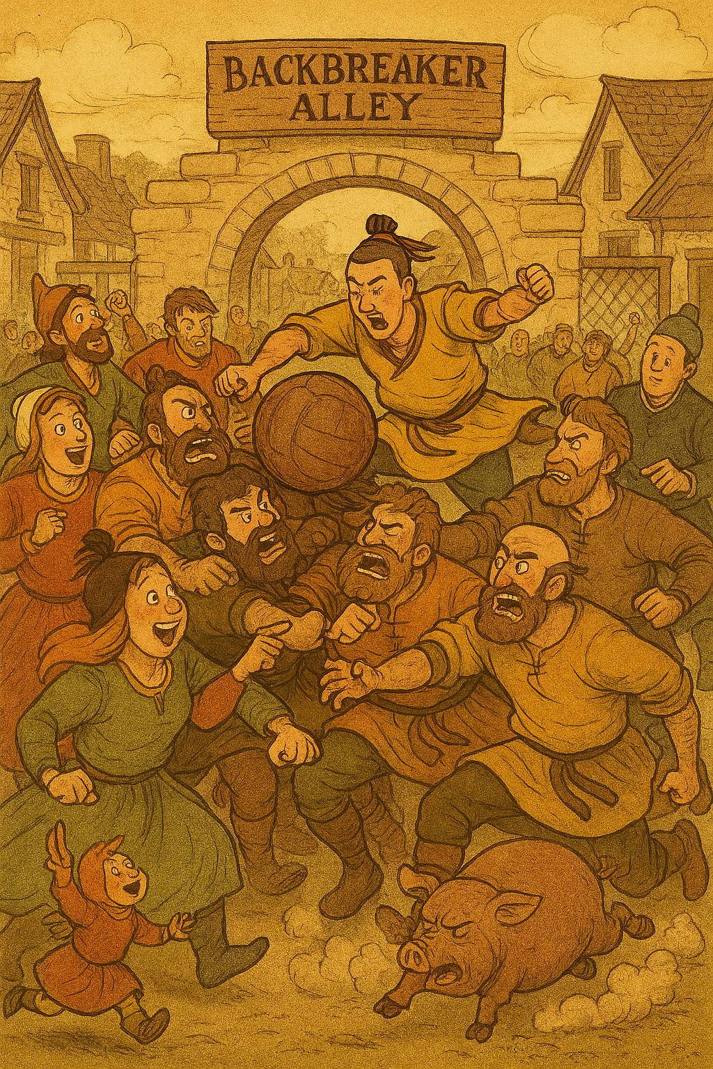 Англия (XII–XVI века) Народные игры, в которых участвовали десятки, а иногда и сотни человек. Мяч гоняли между деревнями, правила были минимальны, а игра часто превращалась в массовую драку. Пример: «Shrovetide football» — матч между двумя частями города, где ворота могли быть в миле друг от друга.