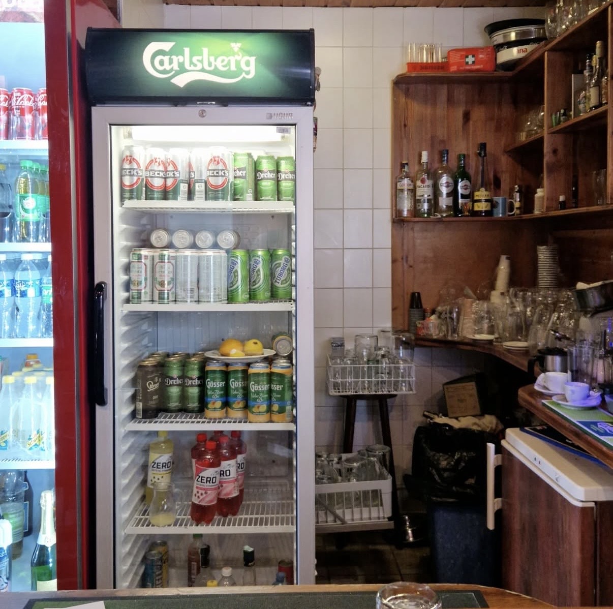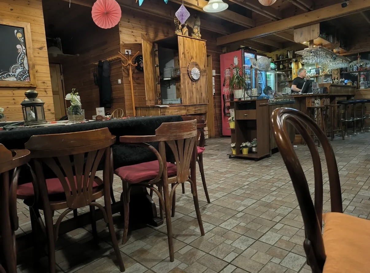 За дальними воротами находится уютная кафешка, где с балкончика можно последить за матчем, перекусить что-нибудь вкусное или взять местного пивка «Brand» за 3,00 евро (0,33 л.)