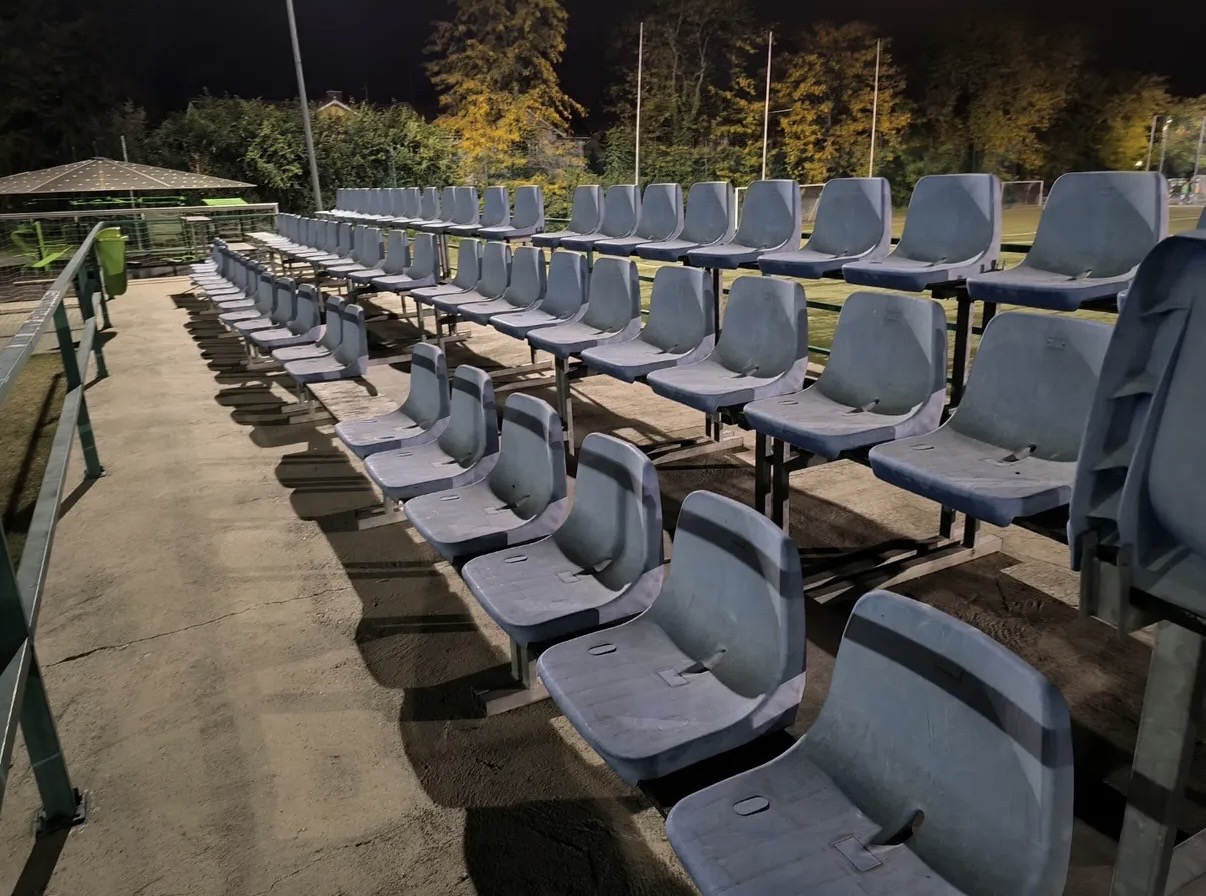 Для болельщиков соорудили небольшую крытую трибуну на пять рядов сидений.
