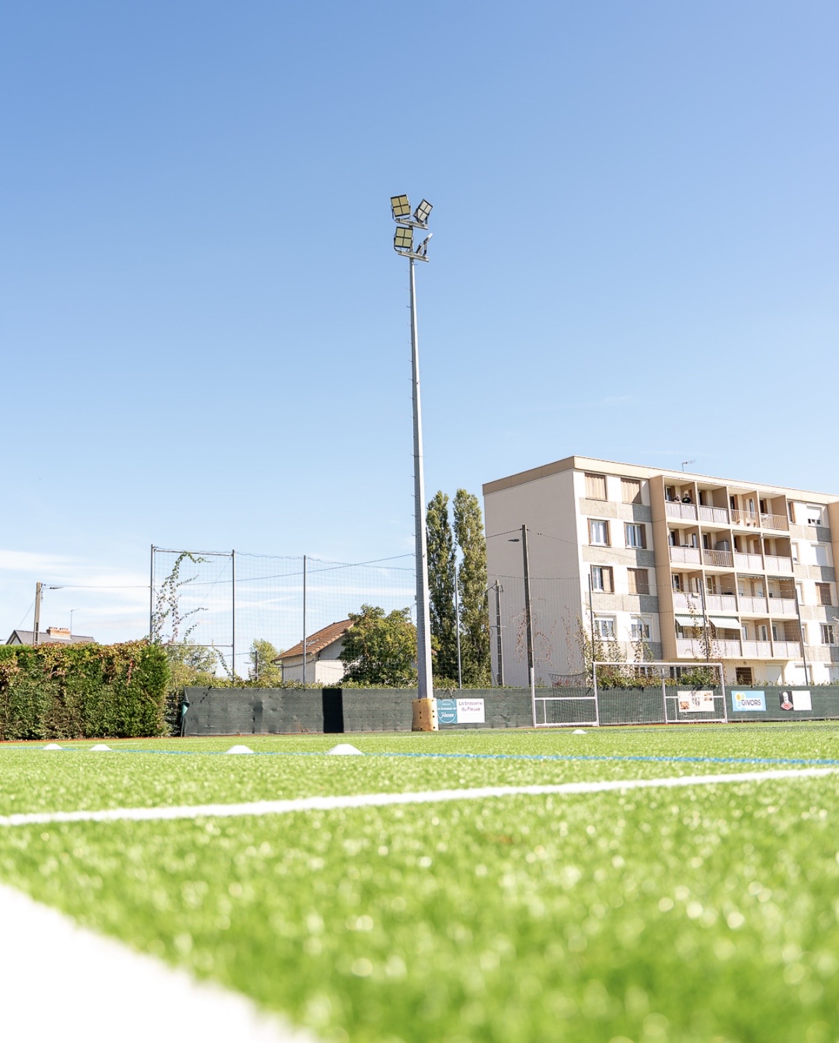 Если свернуть на улочку Огюста Делона, то попадаете на кайфовый стадион местного футбольного клуба JSO Givors (Jeunesse du Stade Olympique de Givors), выступающий в восьмом дивизионе Франции (Seniors Regional 3).