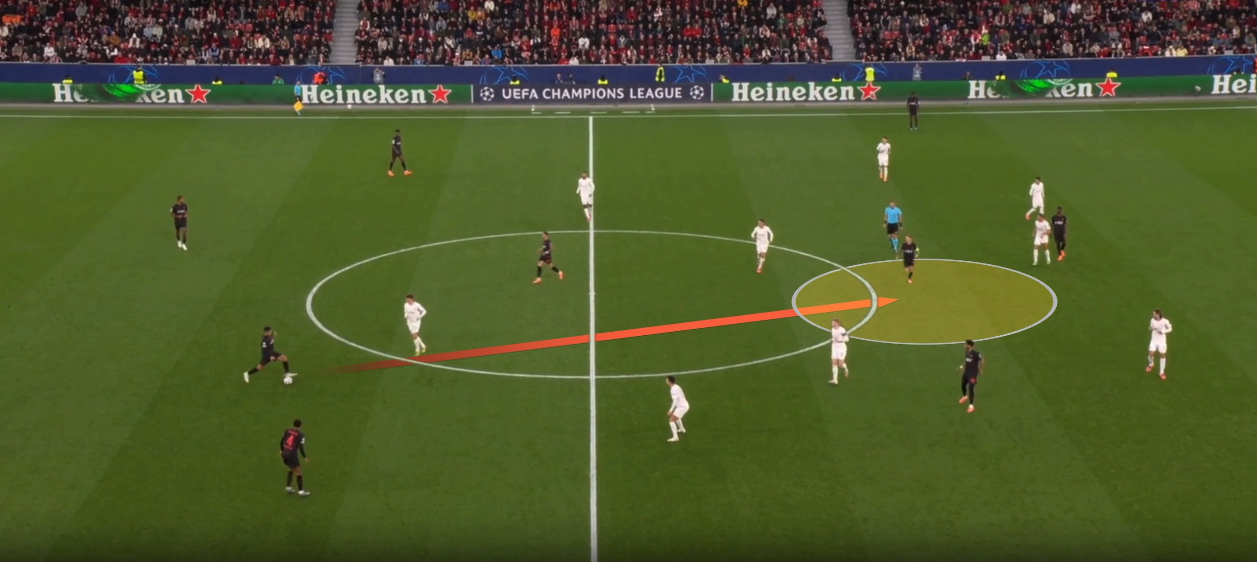 Алекс совмещает функции латераля в 3-4-2-1 со статусом главного плеймейкера, регулярно смещаясь в центр дополнительным полузащитником. Хотя «дополнительный полузащитник» звучит слишком буднично для вклада Гримальдо. Он превращается в десятку, ключевого игрока в атаках «Байера».