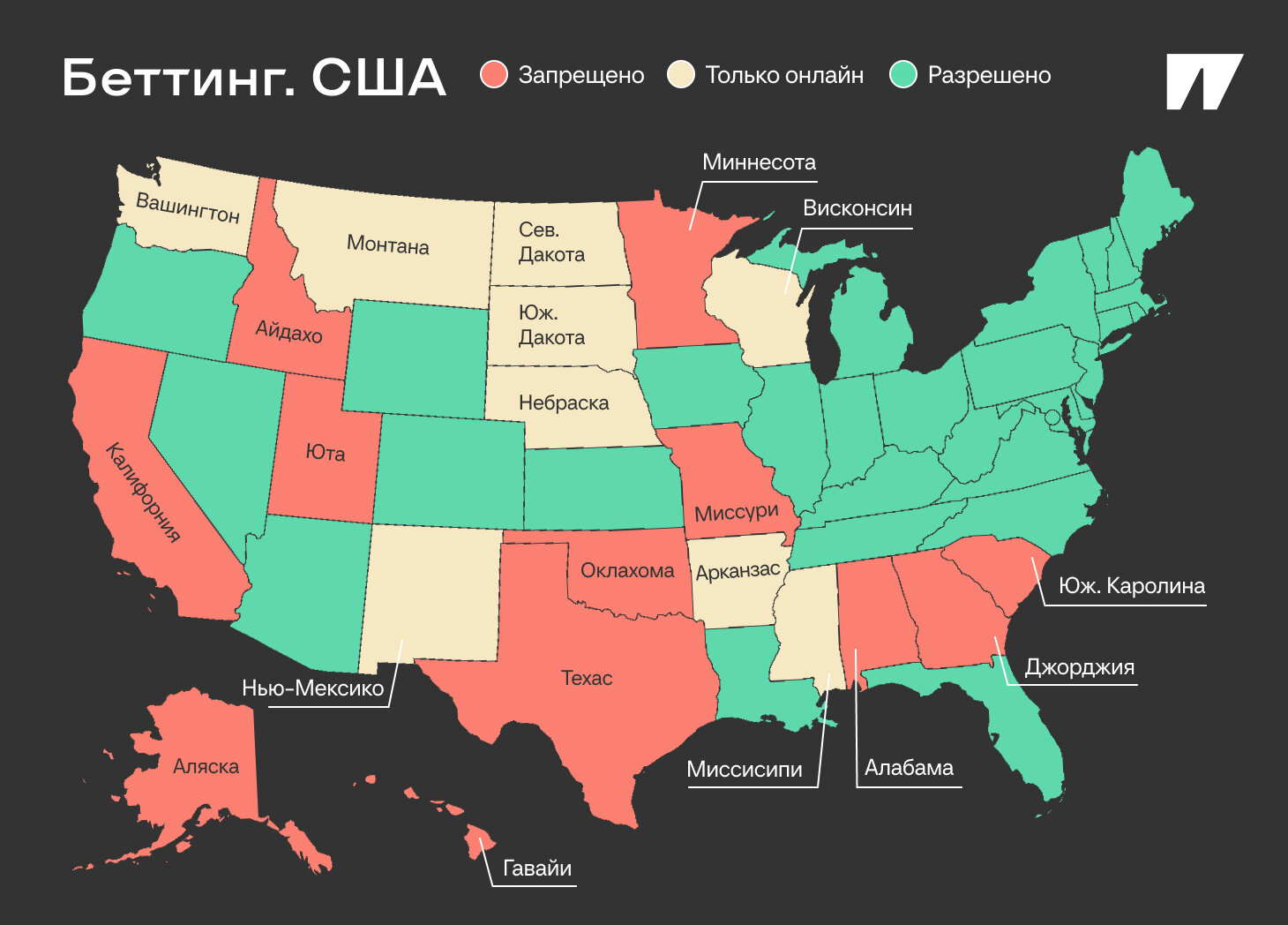 В США переломный момент – 2018-й. Верховный суд постановил, что федеральное правительство не вправе запрещать руководству штатов принимать самостоятельные решения по беттинговым вопросам. Сейчас ставки легализованы в 38 штатах.