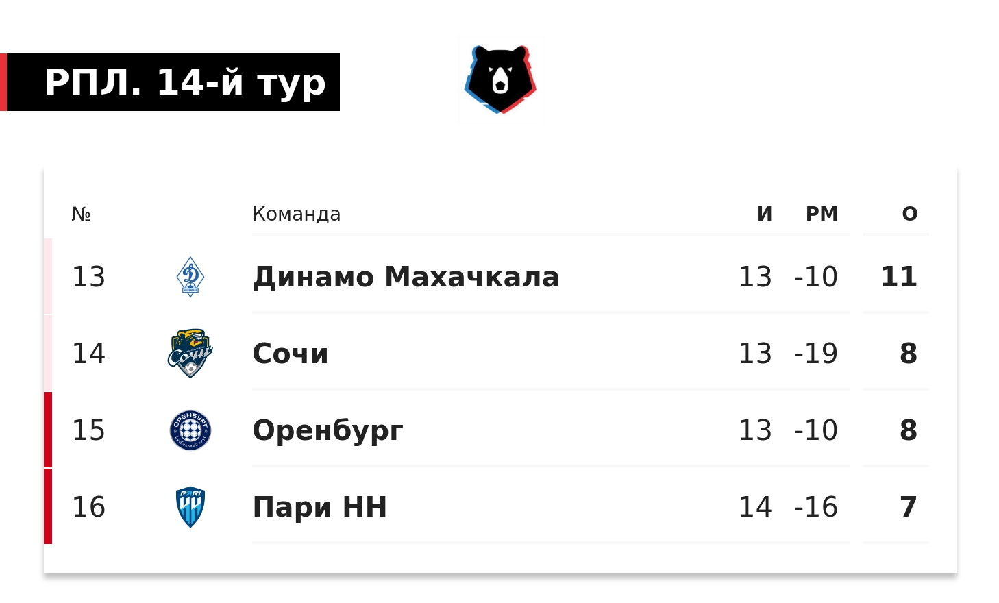 «Пари НН» после внезапной победы «Сочи» над «Ахматом» (4:2) рухнул на последнее место. У команды Шпилевского лишь семь очков в 14 турах, аж 11 поражений.