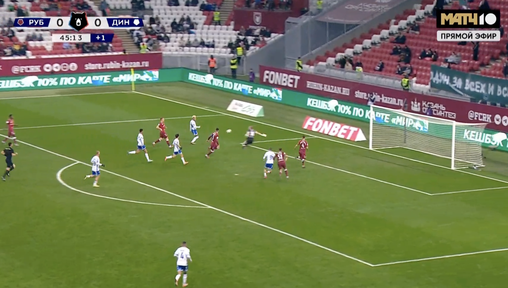 В самом конце первого тайма динамовцы почти забили: казалось, Бителло уже перекинул вратаря Евгения Ставера. И тут случилось это.