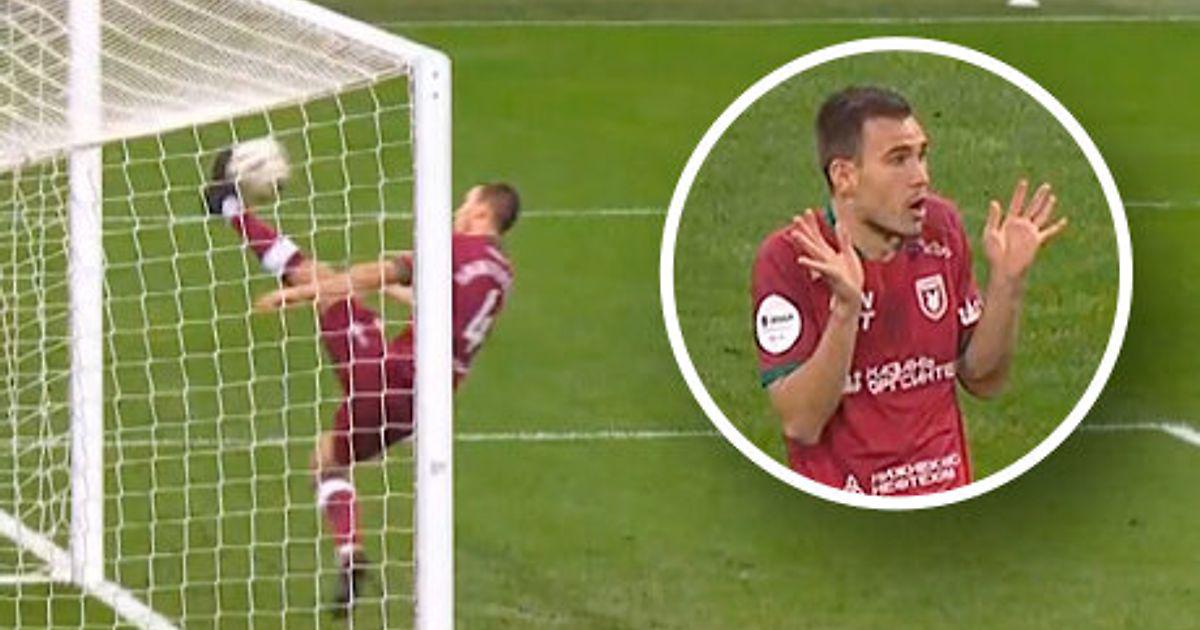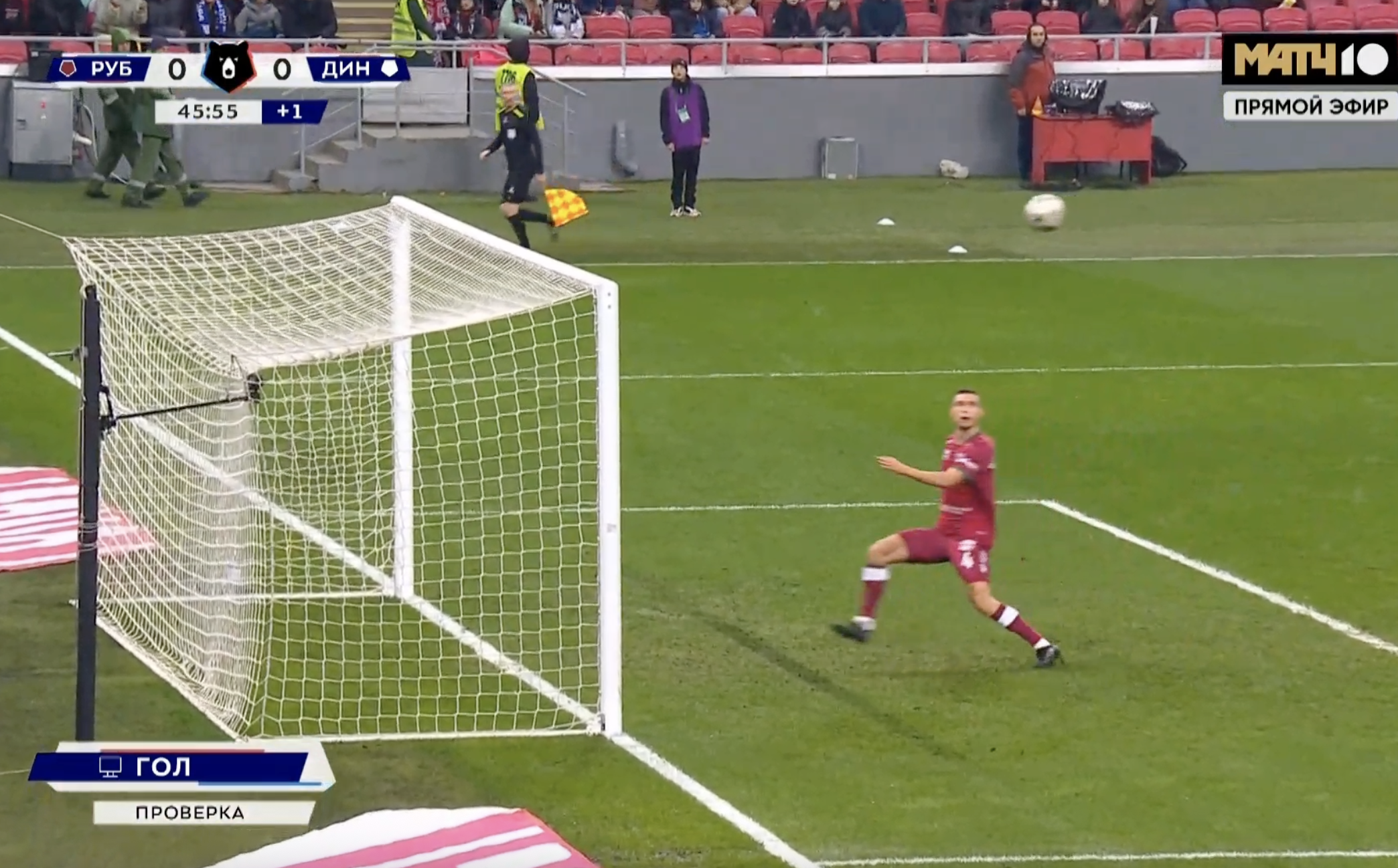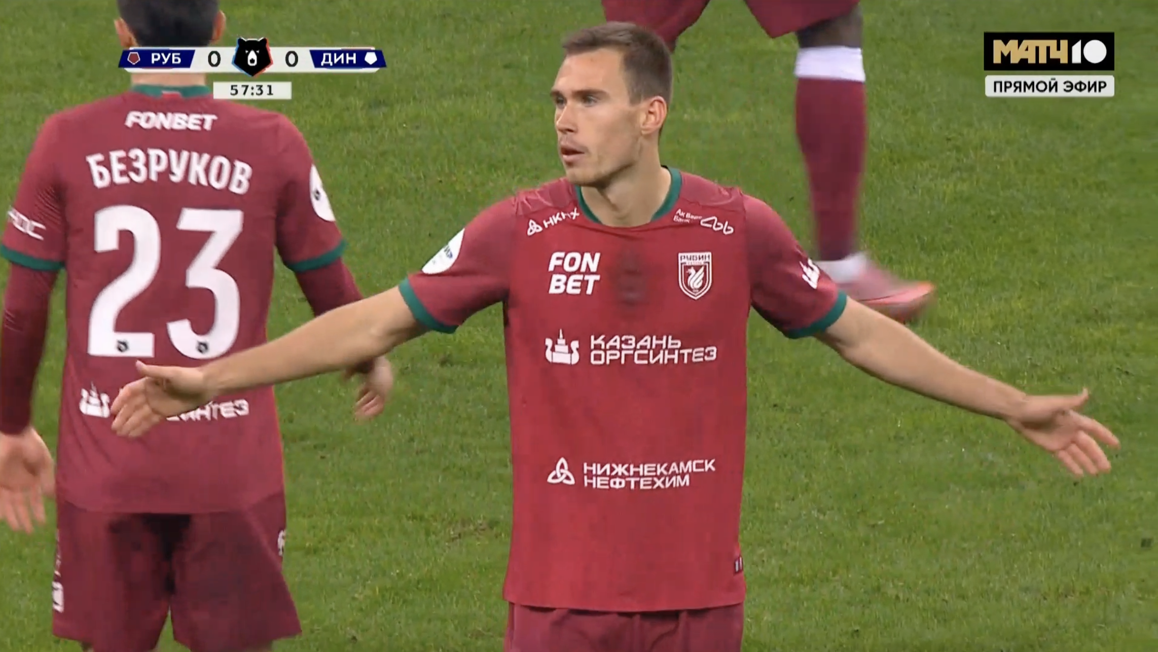 Так защитник «Рубина» Константин Нижегородов вынес мяч из пустых ворот.