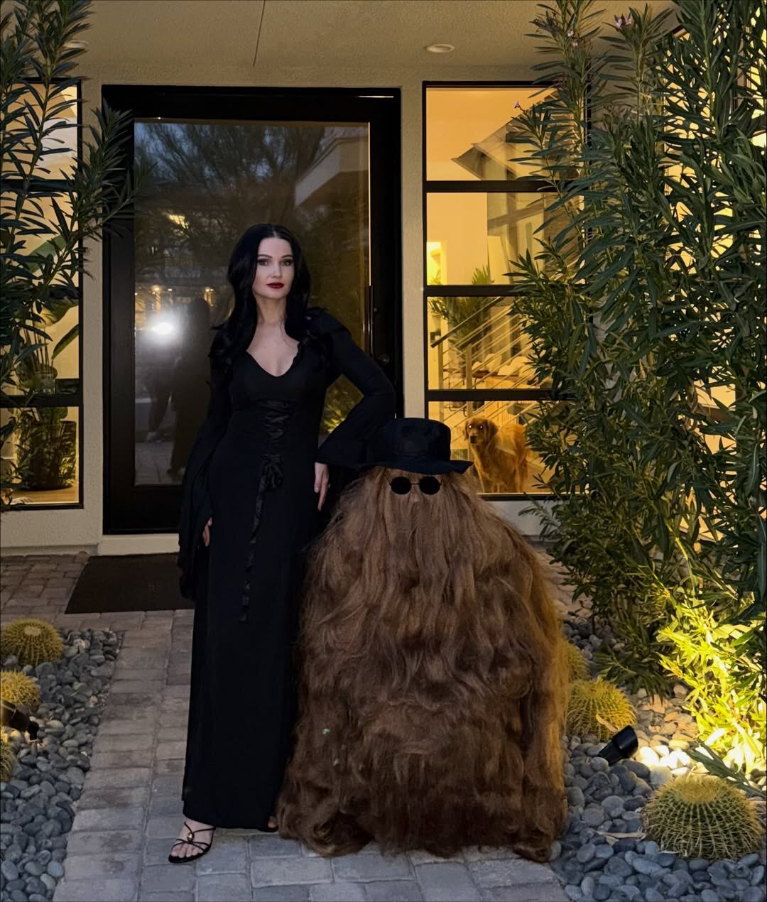 Иван Барбашев и его супруга Ксения на одну ночь стали членами семейки Адамс – Мортишей и кузеном Иттом. Ивана в таком образе узнать тяжело.