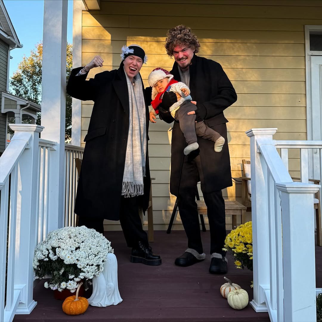 Егор Чинахов тоже решил переквалифицироваться: из хоккеиста он превратился в гонщика Ф1 – кажется, в четырехкратного чемпиона мира Макса Ферстаппена из «Ред Булла». Кирилл Марченко с женой переоделись в конфеты M&M’s, а Дмитрий Воронков - Сэм из фильма «Кошелек или жизнь».