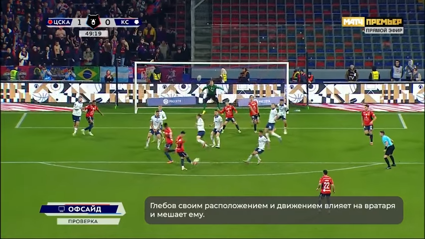 Похоже начальник ДСИ РФС что-то другое смотрел, а не игры КЧМ, или неправильно своим починенным объяснял, раз их действия полностью противоположны практике лучших судей ФИФА. Там судья в поле назначает пенальти, т.к. видит контакт, а ВАР приглашает на отмену, т.к. видит положение игроков и движение мяча, исключающие назначение пенальти. В РПЛ же судьи сделали все ровно наоборот. После гола хозяева полностью перехватили инициативу, но счет сравнять так и не сумели - оба их гола были отменены из-за «вне игры». Но если второй - вообще без вопросов, то первый, который ВАР ассистенты проверяли 10(!) минут мог бы быть спорным, поскольку разница в положении игроков даже по «офф-сайдным линиям» не очевидна - вертикальные линии от плеч соперников почти сливаются