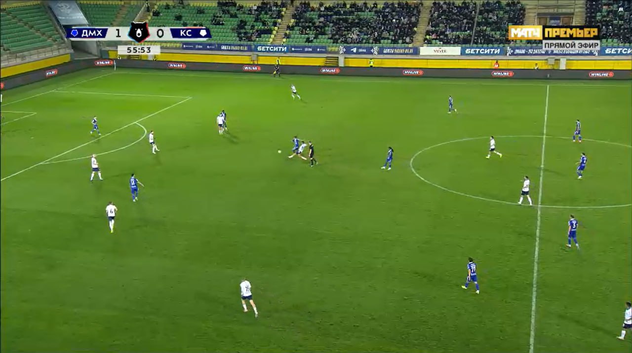 Субботние матчи начнем разбирать с игры Динамо Махачкала - Крылья Советов, которая игралась одновременно со встречей в Казани, но по итогу оказалась гораздо более интересной, чем более статусный матч. Игра началась стартовым навалом хозяев - махачкалинцы по мере сыгрывания состава вернулись к тактике начала года (не сезона), когда свои игры начинали постоянными кроссами и лонгболлами в штрафную с яростной борьбой за отскок. И уже в первой атаке мог забивать Глушков, но его удар головой пришелся в Песьякова. А на 5 минуте хозяева счет таки открыли - фланговый проход Аззи с прострелом во вторую линию атаки завершил «в касание» Мрезиг. Натиск хозяев после гола не спадал до середины тайма - на 22 минуте соотношение ожидаемых голов было xG 1,01-0,00 в пользу хозяев. Но больше им забить не удалось во время стартового навала, поэтому игра успокоилась. И гости создали наконец свой единственный за игру голевой шанс - на 32 минуте Печенин мог замкнуть кросс Олейникова, но головой в борьбе с защитником в ворота не попал. Второй тайм тоже начался штурмом хозяев, но не таким длительным и успешным, как первый. Но еще один гол таки состоялся - после нескольких неудачных попыток гостей выбить мяч головой из своей штрафной тот отскочил к одинокому Мубарику, и тот пробил Песьякова опять ударом «в касание». Так состоялась всего вторая победа Динамо Мхч в сезоне с 2 забитыми голами, обычно они забивают вообще всего 1 гол за 2 игры. А Крылья еще раз доказали - если строить игру в «автобус», то бесхитростные лонгболлы соперников должны «выноситься» из своей штрафной сразу, проигрываешь борьбу за отскок - соперник накажет. Даже такое средненький по составу, как Махачкала. По работе Чебана и ВАР Шадыханова следует отметить только один момент, когда после неудачного подката защитника КС мяч пошел к махачкалинцу