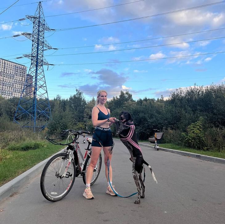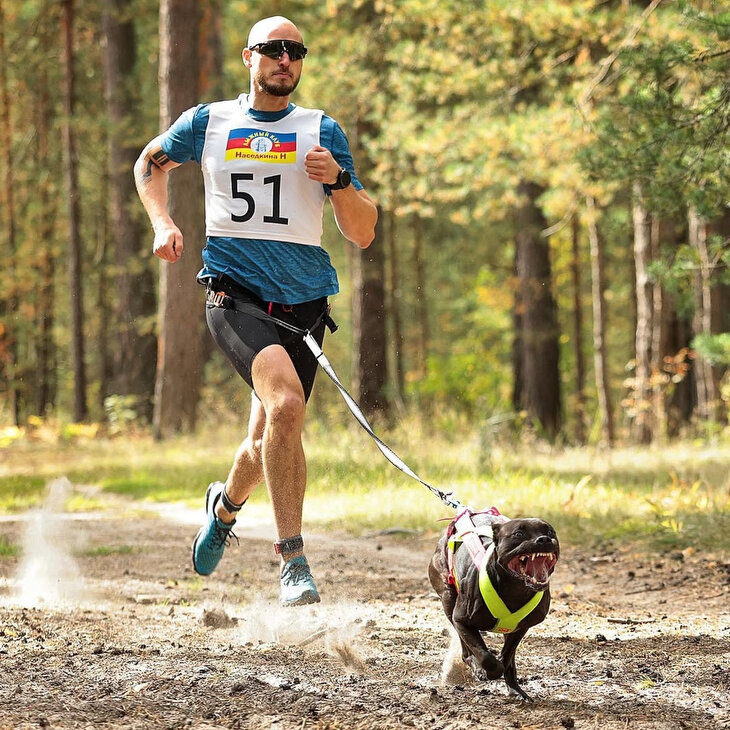 Я начала узнавать, что можно делать с одной собакой, и узнала про монодисциплины ездового спорта, где участвует только одна собака. С собакой можно ездить на велосипеде, на лыжах, на скутере, а можно просто бегать – это каникросс. Я подумала, что это классно, и купила правильную ездовую шлейку, пояс, потяг с амортизатором, а кроссовки у меня уже были. Попробовала бегать – очень понравилось, особенно участвовать в соревнованиях.