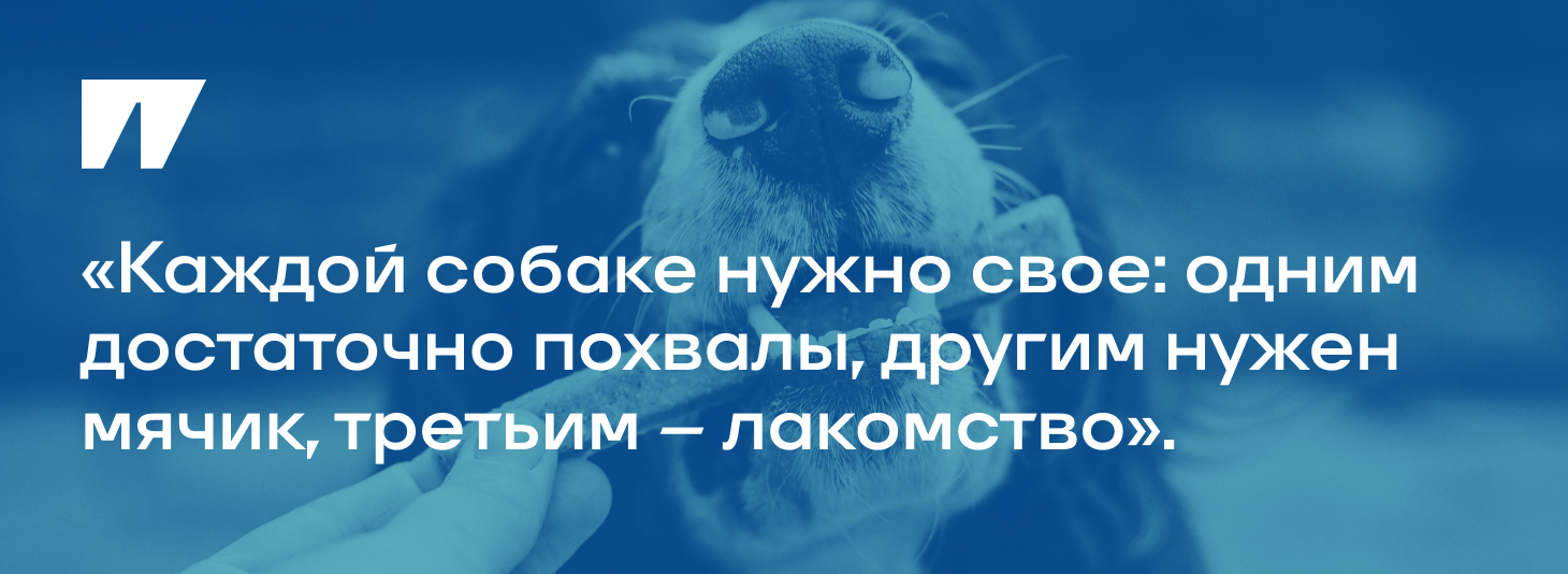 Я часто сталкивалась с хозяевами, которые радовались однотонно: «Молодец, Бобик», – и все. Собака не получает никаких эмоций и даже не понимает, нужно ли продолжать. Все должно строиться на позитивном подкреплении, без наказаний. Те, кто занимался с кинологами, знают: важно вовремя похвалить и остановиться до усталости. Новички часто ошибаются именно в этом.