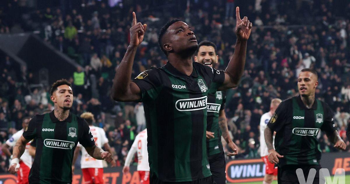 На 18-й минуте всё-таки чёрно-зелёные счёт открыли. Быстро по левому флангу забежал Са и навесил чуть назад в штрафную на Оласу, который ворвался в свободную зону и сходу пробил головой, но угодил в штангу. Мяч отскочил к Кордобе, но тот не справился, а невольно отдал передачу чуть правее свободному Черникову. Всего-то нужно было принять и пробить – мощно и точно. Что Александр в этой ситуации и сделал – 1:0.