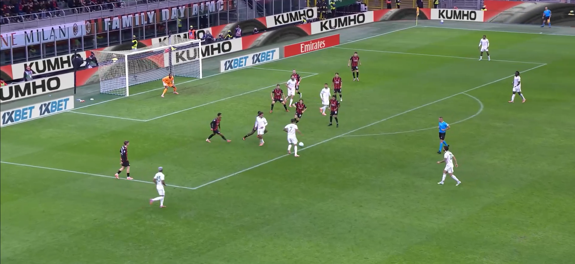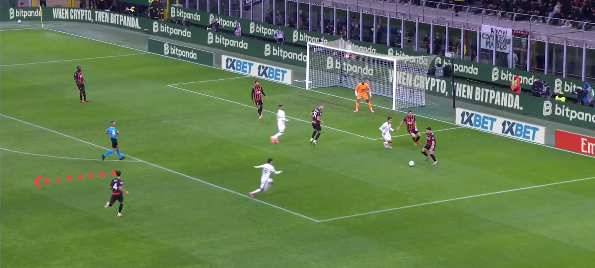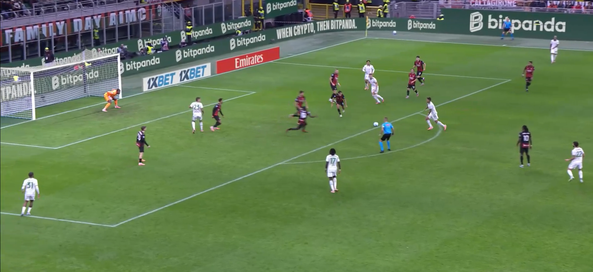 Из общих паттернов, которые сохранил «Милан», — неумение защищаться в собственной штрафной и на своей трети поля: команда очень глубоко садится, при этом не перекрывает линии передач в штрафную и зону перед штрафной.