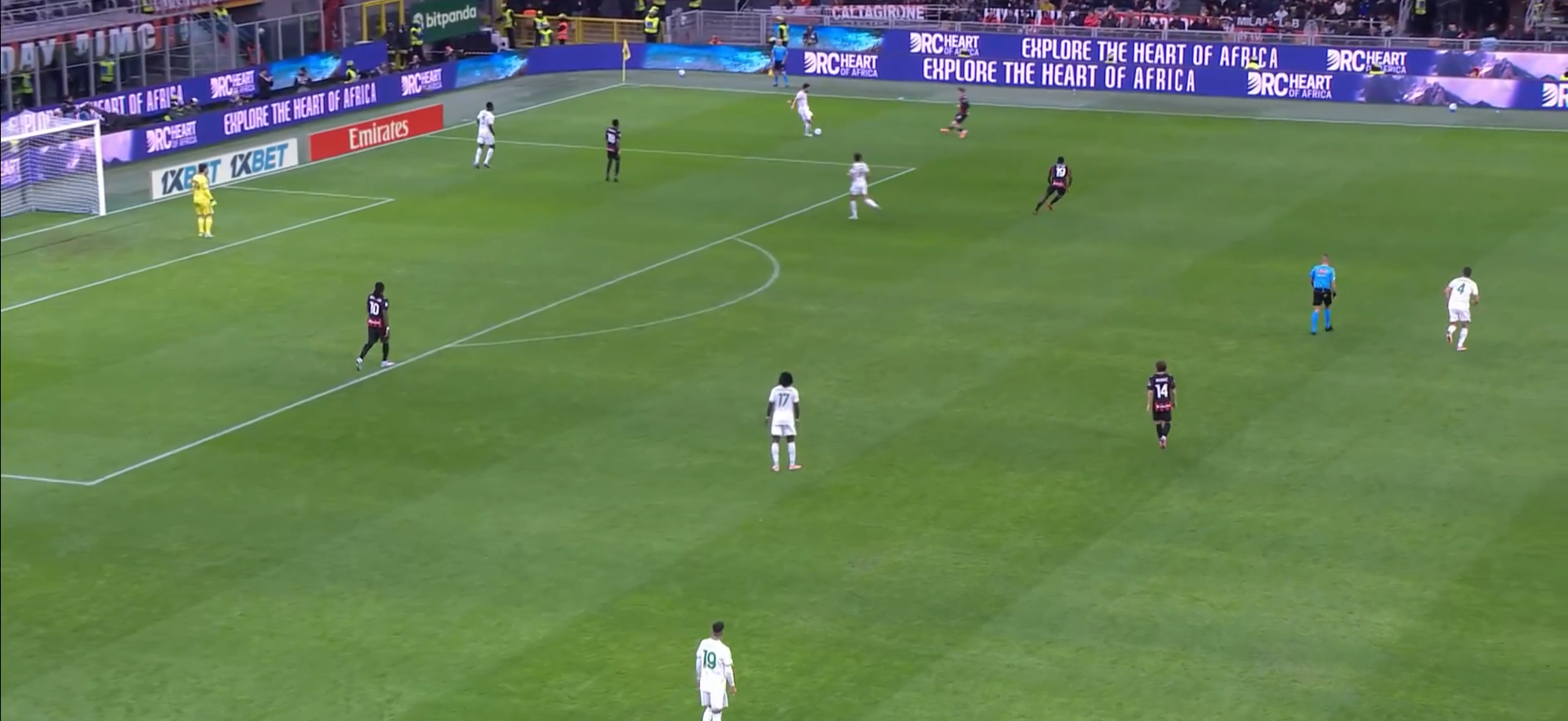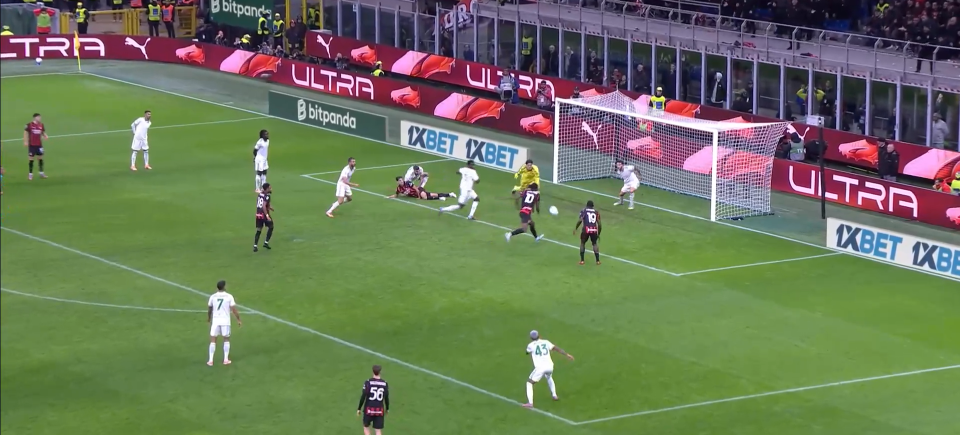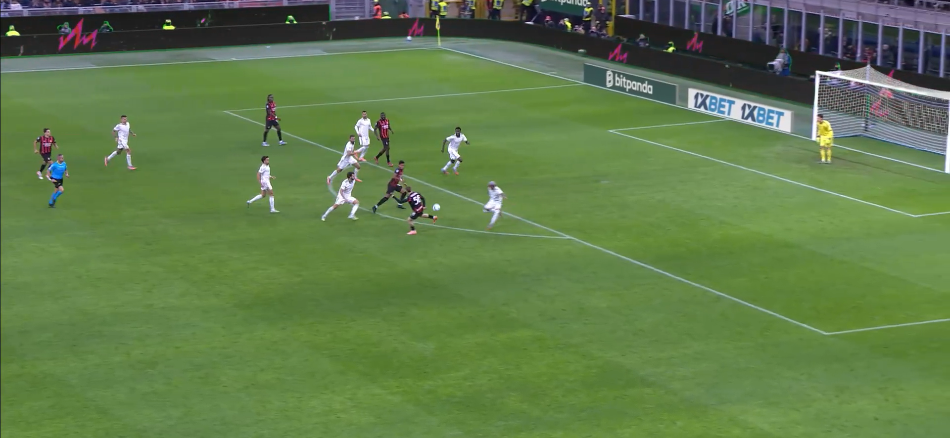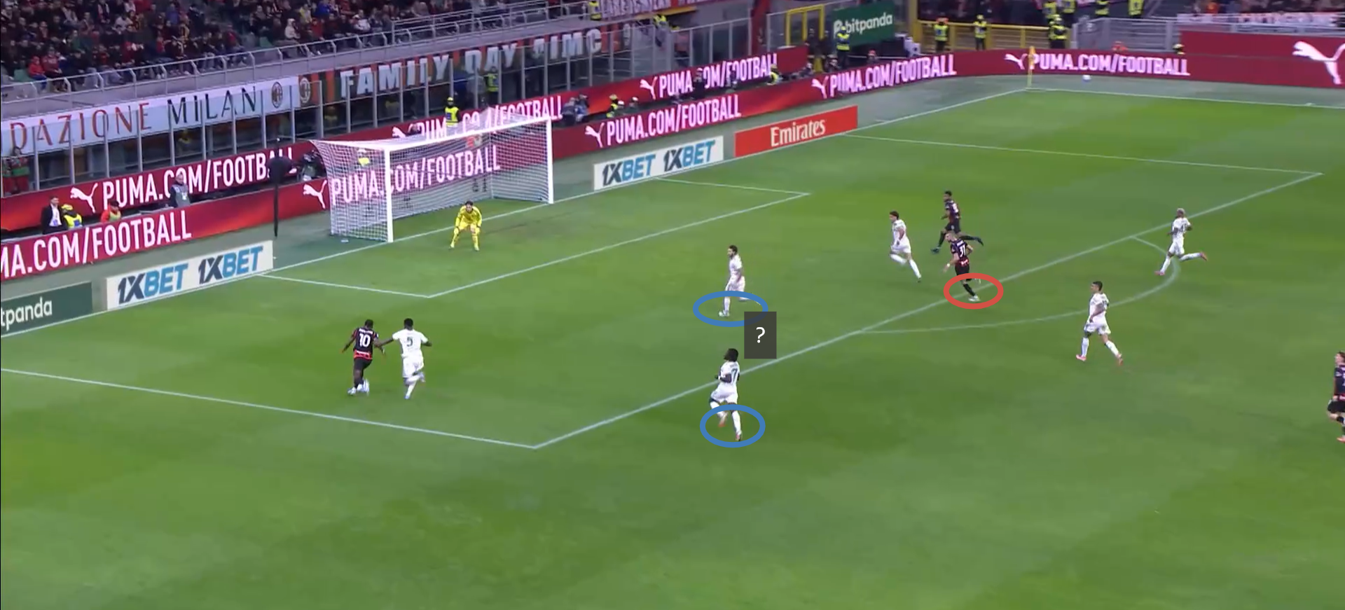 Из общих паттернов, которые сохранил «Милан», — неумение защищаться в собственной штрафной и на своей трети поля: команда очень глубоко садится, при этом не перекрывает линии передач в штрафную и зону перед штрафной.