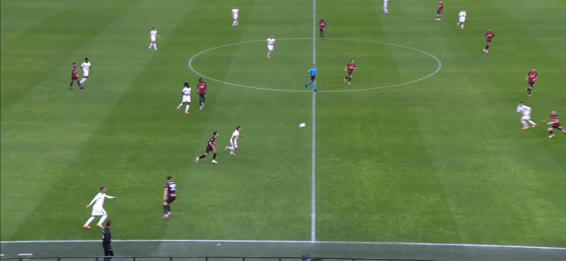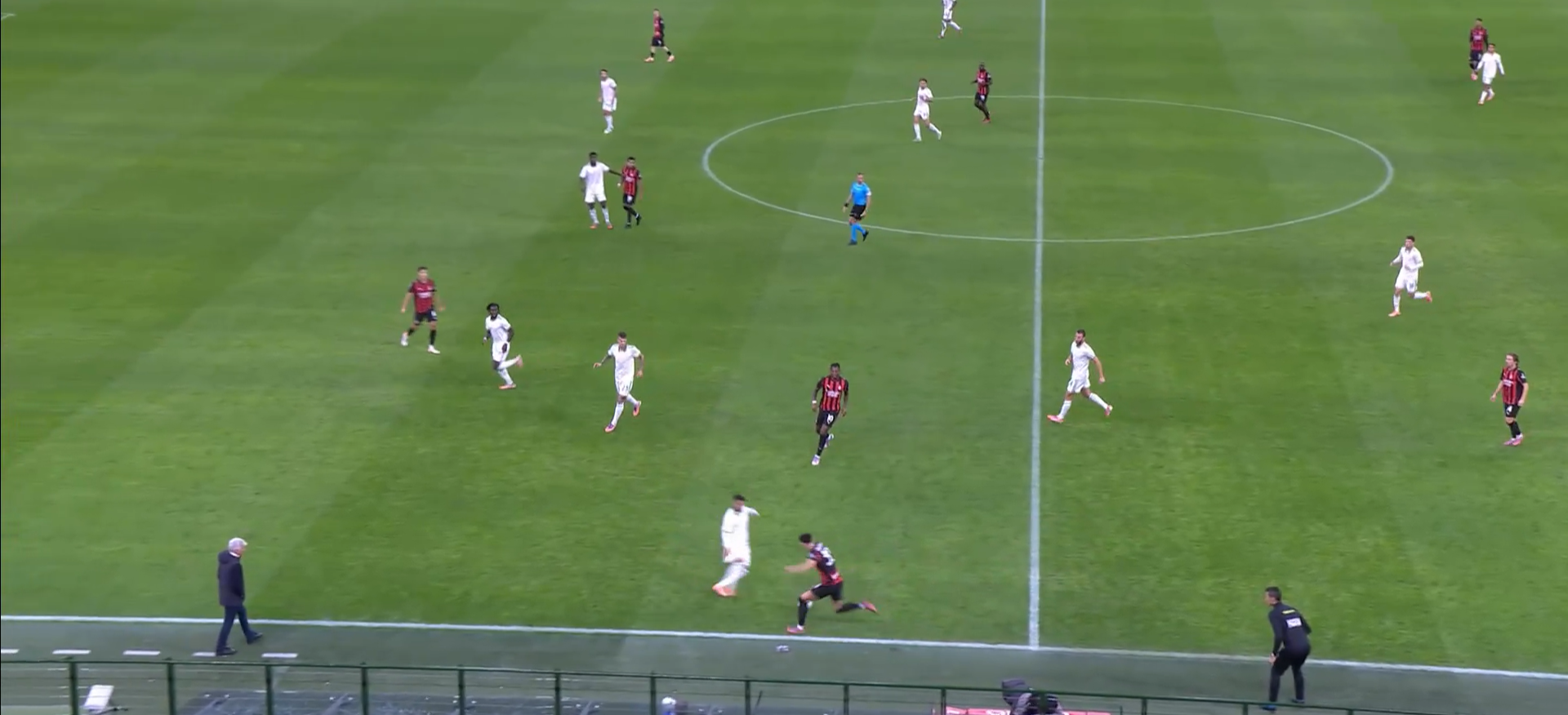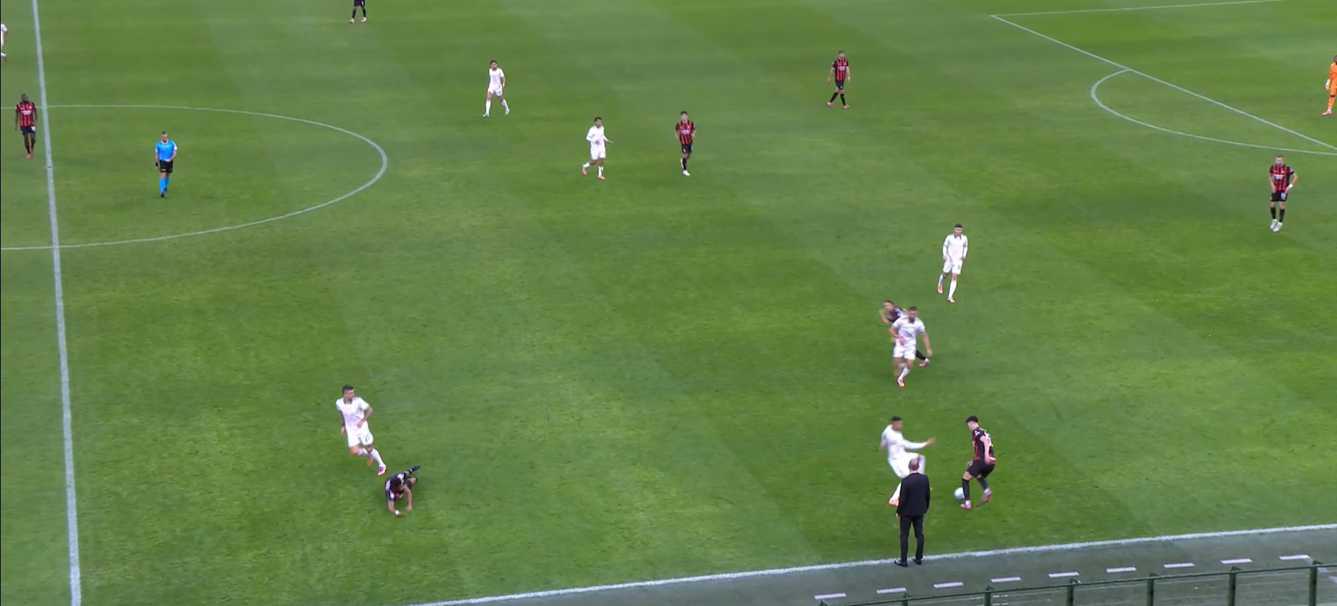 Момент с промахом Леау стоит начать рассматривать с эпизода, когда Риччи сохранил мяч в крайне сложной ситуации. Далее — ряд диагональных передач, в результате которых защитники, предпочитающие играть по мячу, полностью потеряли игроков соперника в своей штрафной.