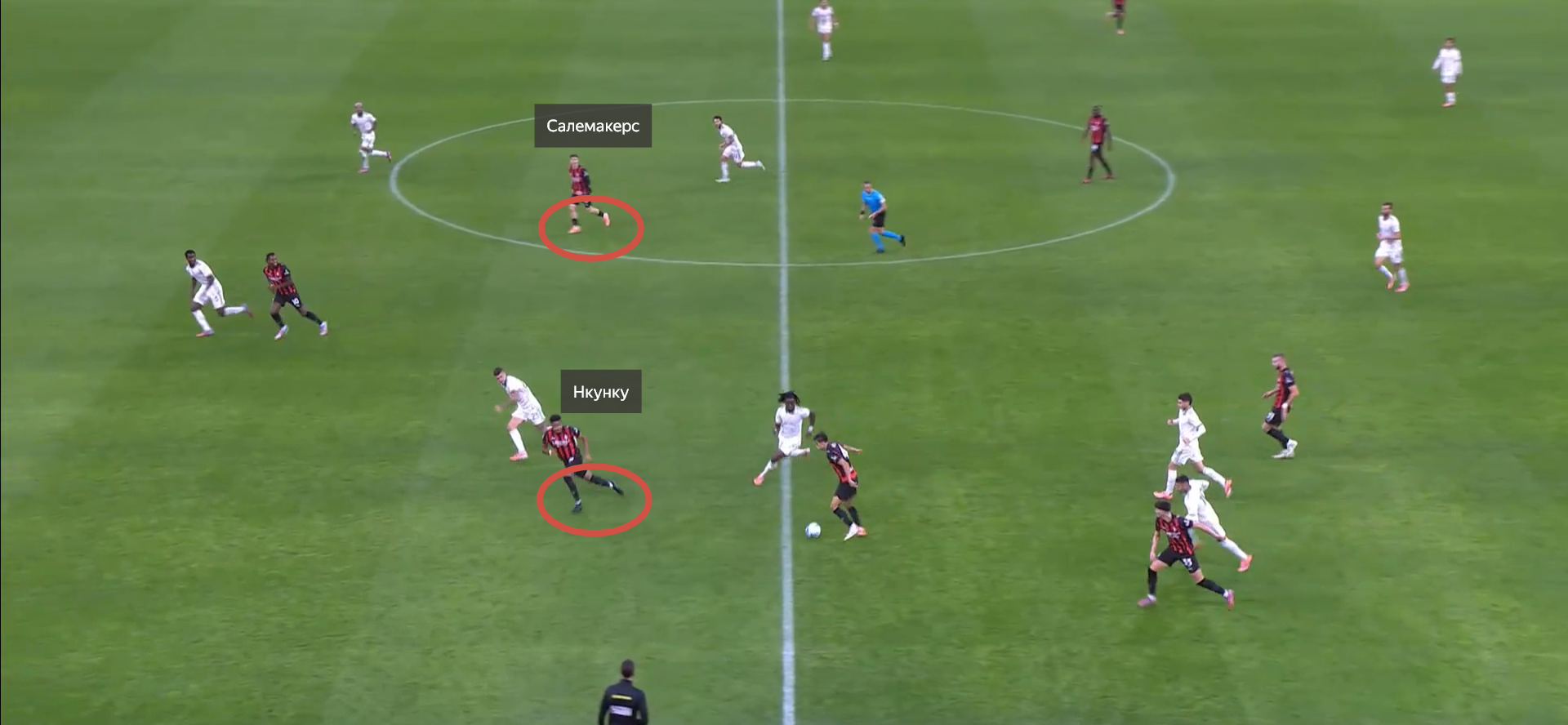 Более того, в зону левого полуфланга эпизодически стал смещаться и Нкунку, что еще раз осложняло позиционирование игроков «Ромы».