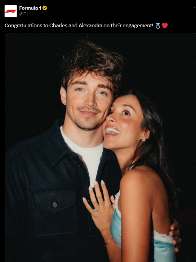 Леклер подтвердил, что состоит в отношениях, в мае 2023 года, однако сначала не называл имя Александры, хотя она уже тогда присутствовала в Монако в паддоке Скудерии.