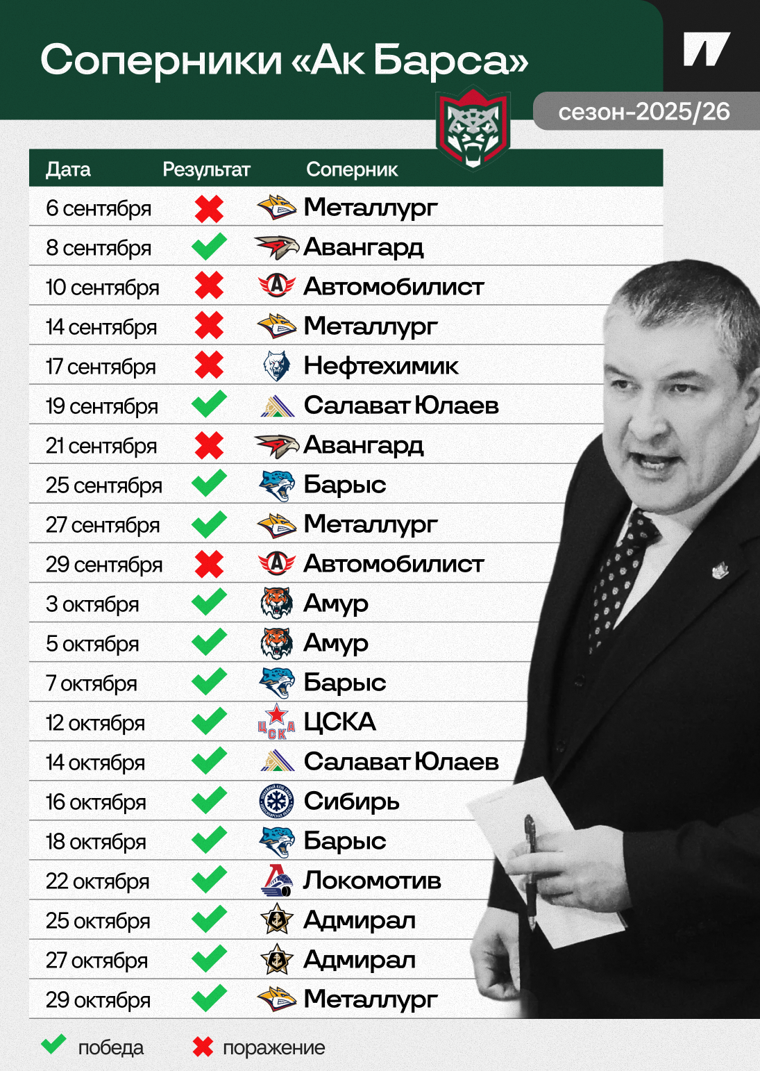 Есть пробелы и там, где состав противников более пестрый. «Ак Барс» этой осенью словно катается на американских горках: в сентябре им выпали готовые и хорошо мотивированные лидеры чемпионата, а в октябре – команды, на борту которых перманентно звучат сигналы тревоги: