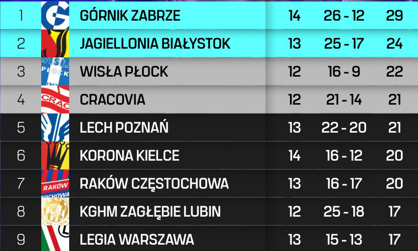 В сезоне 2021/2022 варшавяне после двенадцати туров имели два матча в запасе и всего девять очков. Тот сезон «Легия» завершила на десятой строчке. В сезоне 2016/2017 «Легия» в стартовых двенадцати турах набрала тринадцать очков. Это, однако, не помешало варшавянам по итогам сезона завоевать золотые медали.