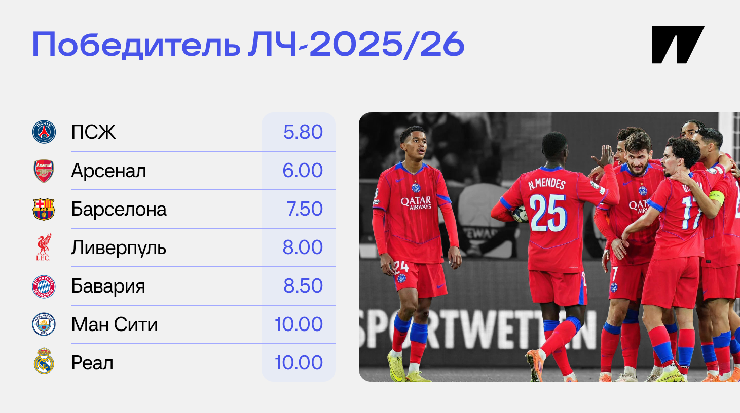 «ПСЖ» главный фаворит на титул, «Арсенал» близко, «Сити» и «Реал» на одном уровне