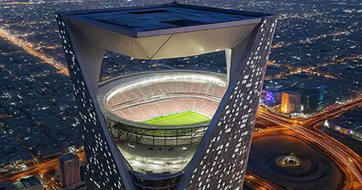 В соцсетях большую популярность набрал видеоролик со стадионом на небоскребе. По всему миру прошла новость о том, что это проект одной из арен для ЧМ-2034 в Саудовской Аравии.