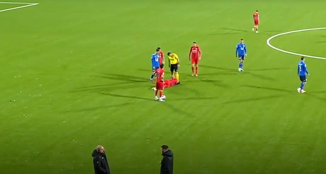 «Раднички» (в красном) повели 2:0 к девятой минуте. На 22-й игра остановилась из-за фола, а Жижович обратился, по-видимому, к резервному судье.