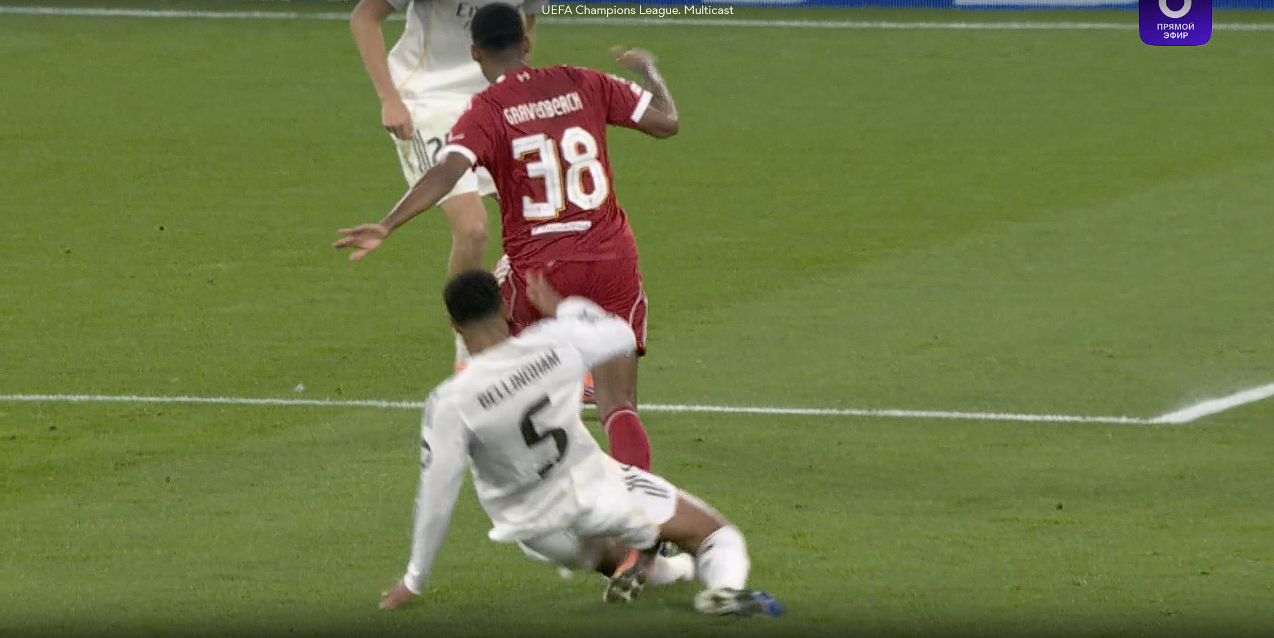На 61-й минуте Ковач мог удалить Джуда по примеру итальянца Мариани в матче «ПСЖ» — «Бавария» (разбор момента ниже). Эпизоды похожи: Беллингем так же пошел в подкат сзади, не сыграл в мяч, двумя ногами. Прыгнул на красную — приземлился на желтую. Повезло Джуду, честно говоря.