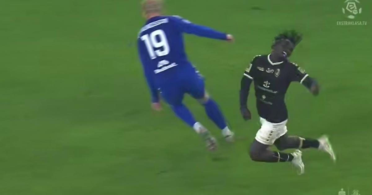 Самая дикая симуляция, которую вы когда-либо видели: ее исполнил ганский полузащитник польской «Погони» Муса Джувара в матче с «Вислой» Плоцк.