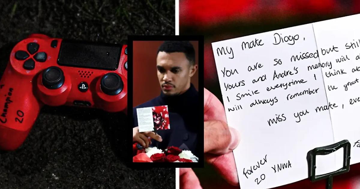 Среди игроков испанской команды был бывший одноклубник Диогу. Трент Александер-Арнольд оставил цветы, геймпад и записку на мемориале друга.