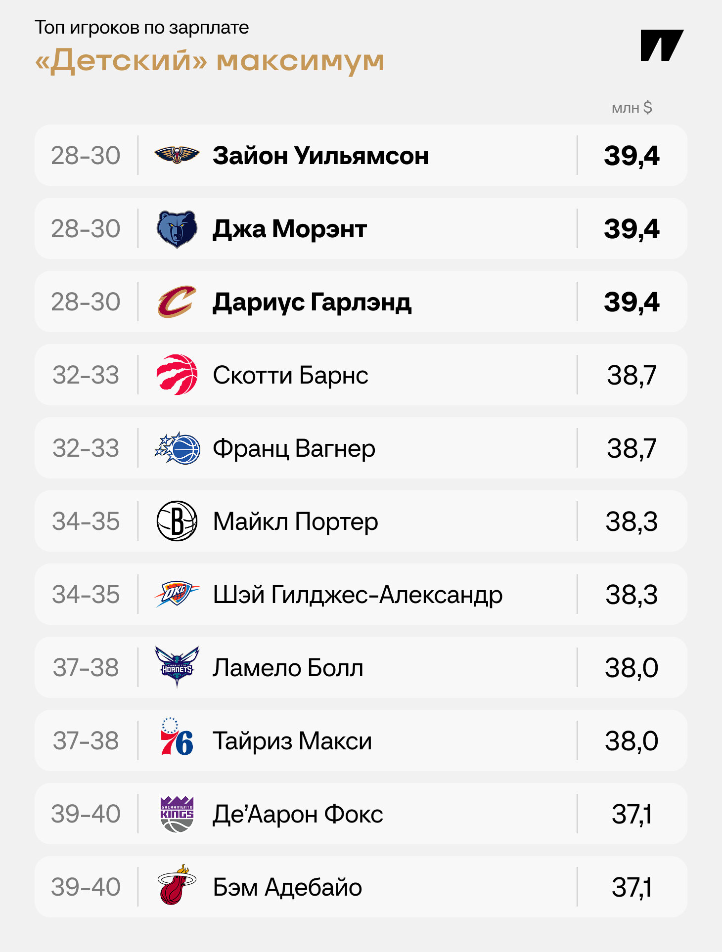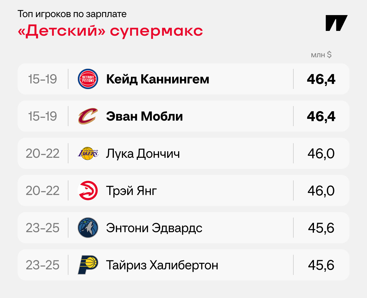 Аналогичные суммы – в контрактах более молодых, но при этом и более успешных игроков. Первую максималку звезда получает, когда переходит с контракта новичка. И те, кто успел до этого продления попасть в сборную сезона, получают прибавку.