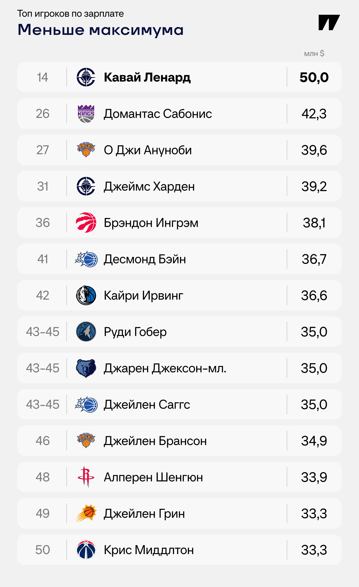 У Кавая 14-я зарплата во всей НБА, но при этом не максимальная, в то время как Бэм Адебайо едва пролез в топ-40 со своей максималкой. Такой вот терминологический парадокс.