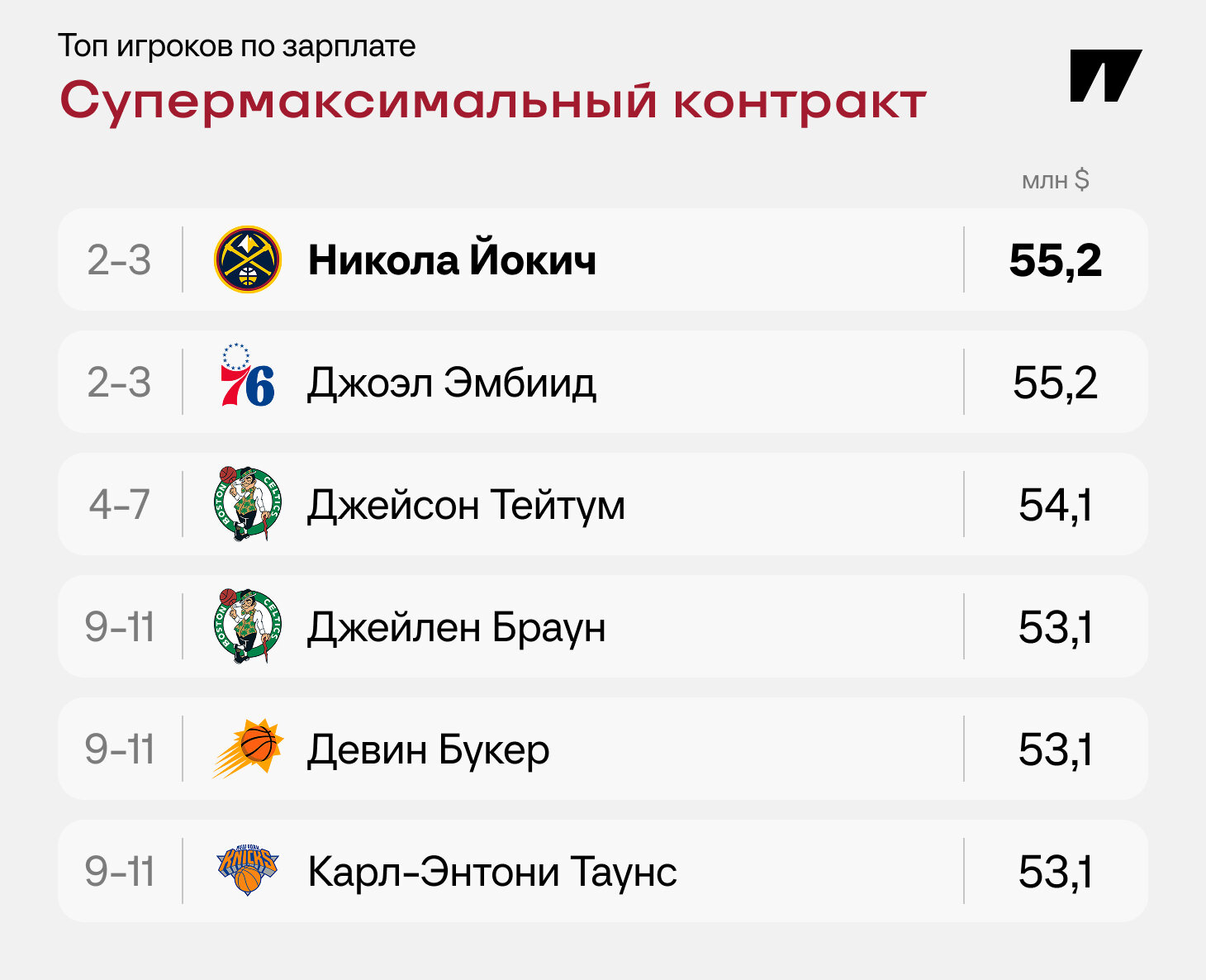 Вернемся к НБА. «Супермаксом» называют те же 35%, только получают их не за выслугу лет, а за достижения. MVP, символические пятерки сезона, звание лучшего оборонительного игрока. Такой супермакс и сам Карри подписывал в 2017-м, а сейчас в лиге 6 игроков с подобной «ранней ветеранской максималкой». Два из них – в «Бостоне»: