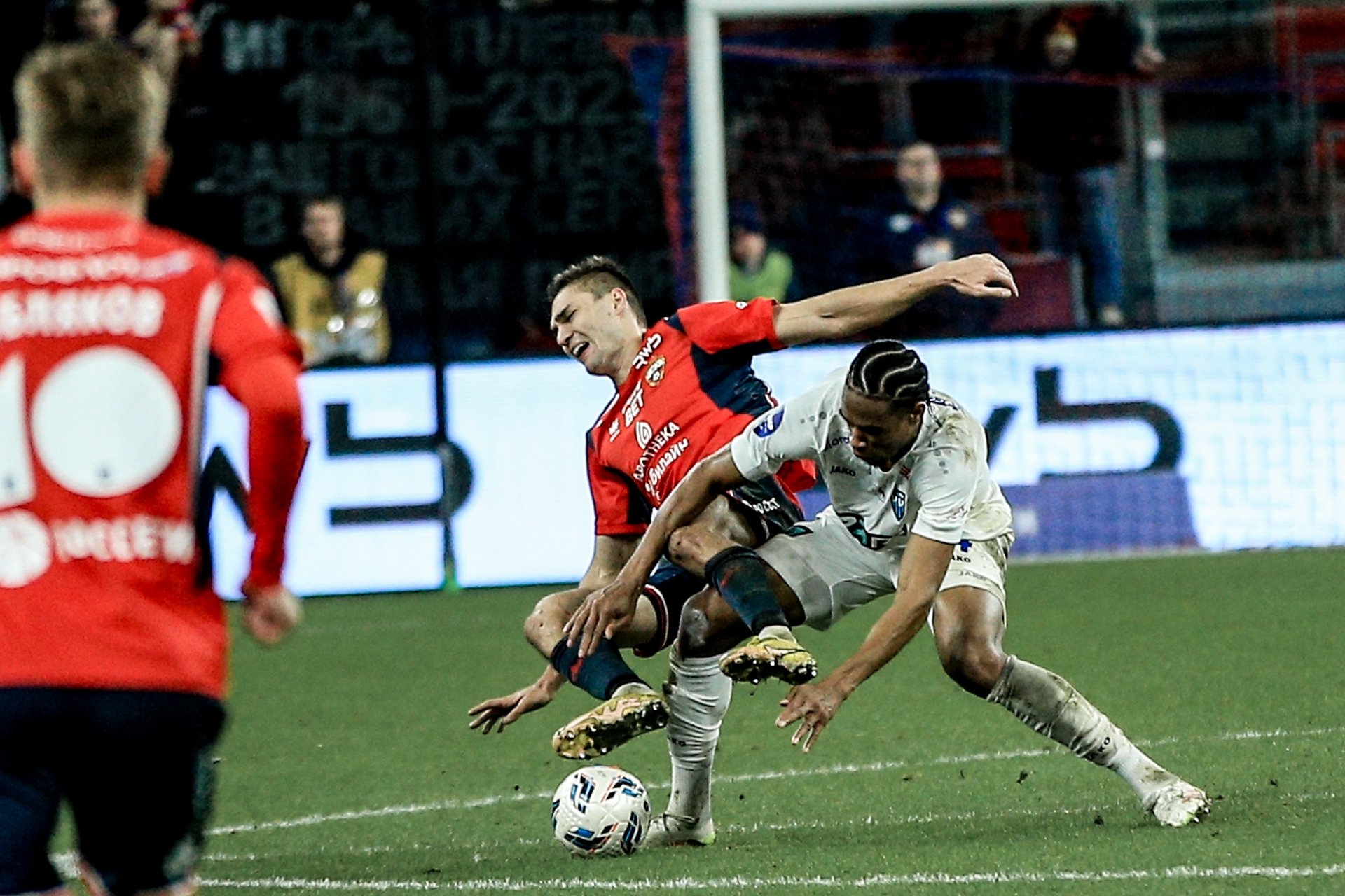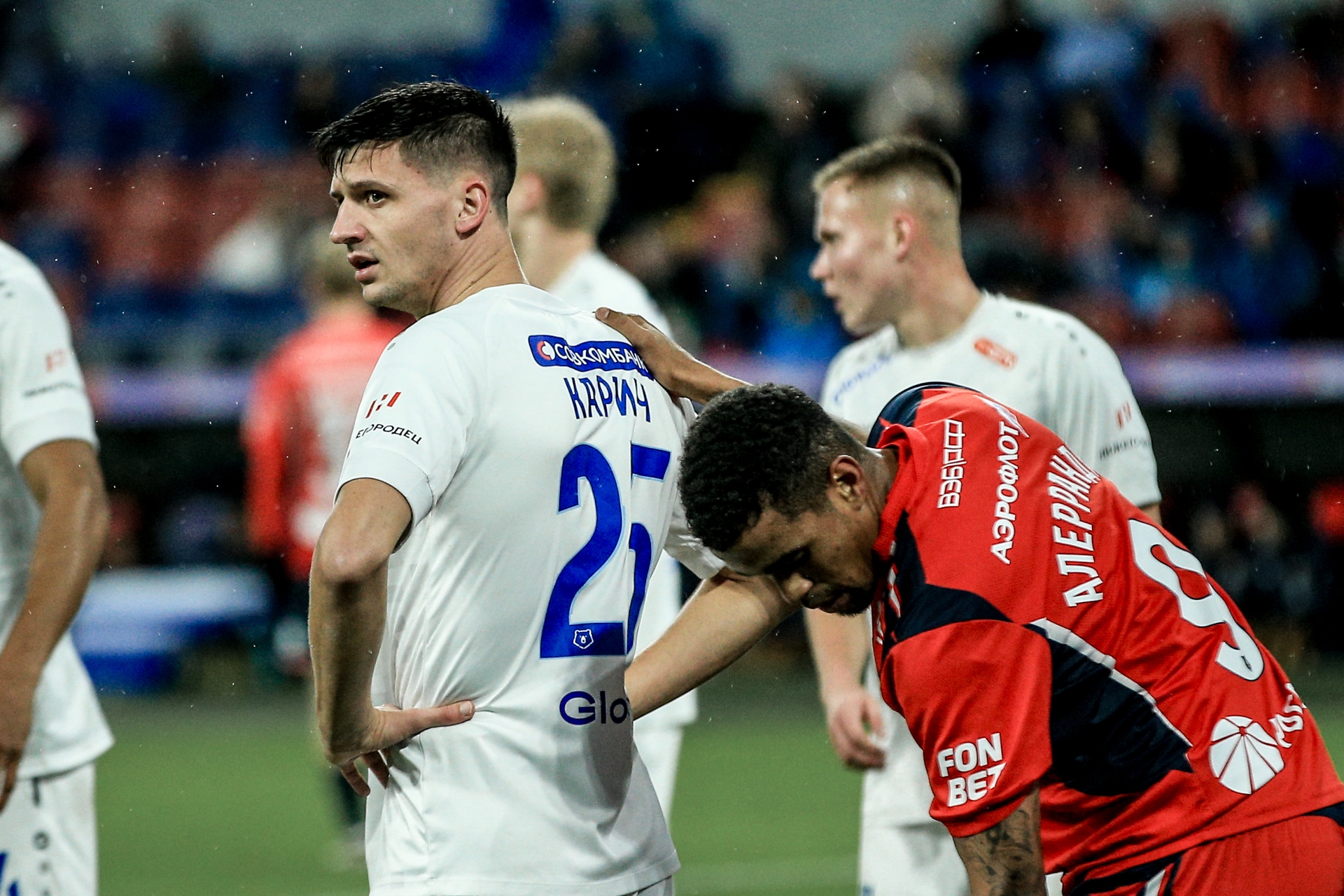 У Карасева есть волосы, Алеррандро передает печатки Медведеву. Фото с матча ЦСКА — «Пари НН»