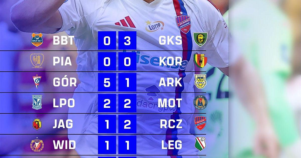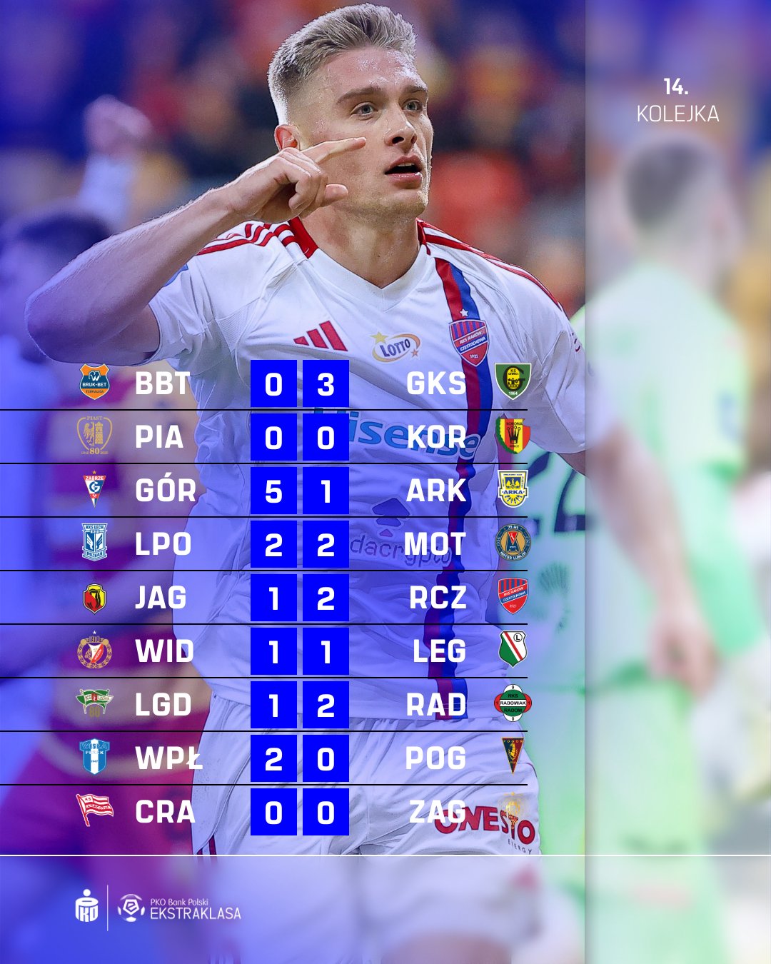 Еще два матча четырнадцатого тура завершились без голов. В Гливице «Пяст» принимал «Корону». Второй тайм проигранного матча в Гдыни вселил в болельщиков «красно-синих» надежду на успех под руководством Даниэля Мысливца, но в матче с «Короной» от атакующей игры гливичан ничего не осталось.