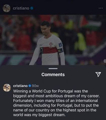 Любопытно, что в 2022-м Криштиану заявил следующее: «Я отдам все, чтобы Португалия выиграла ЧМ. Это мечта для нашей страны и для меня».
