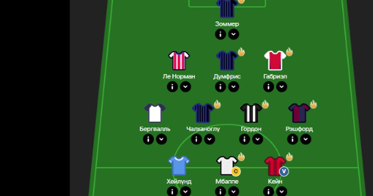 Добрый день, дорогие друзья! В моей команде идет подготовка к 4 туру Лиги чемпионов-фэнтези в ходе которой пришлось сделать несколько изменений в составе по сравнению с предыдущим туром. Так в защите вместо Рикардо Калафьори, который почему-то не используется Артетой в матчах Лиги чемпионов я приобрел другого канонира - Габриэля, который уже отличался в этом розыгрыше. Также перед матчем мерсисайдцев с «Реалом» пришлось менять ван Дейка на Робина Ле Нормана из «Атлетико». Матрасники играет дома с «Юнионом», поэтому следует ждать сухарь у их защитников. В линии полузащиты также есть изменения. Травмированного Педри заменил Хакан Чалханоглу из миланского «Интера». Получается, что в этом туре у меня в основном составе составе три игрока миланского клуба составляют так называемый «стержень» от вратарской линии до полузащиты. Сразу два игрока из моей средней линии находятся под вопросом выхода в стартовом составе - Адейеми и Бергвалль. Если первый в матче Бундеслиге вышел только на 95 минуте, то норвежец был заменен на 7 минуте в связи с подозрением у него травмы головы. Однако в итоге я решил выпустить норвежца. В линии атаки у меня без изменений - Мбаппе, Кейн и Хейлунд. А какой состав вы приготовили к приближающемуся футбольному пиршеству?